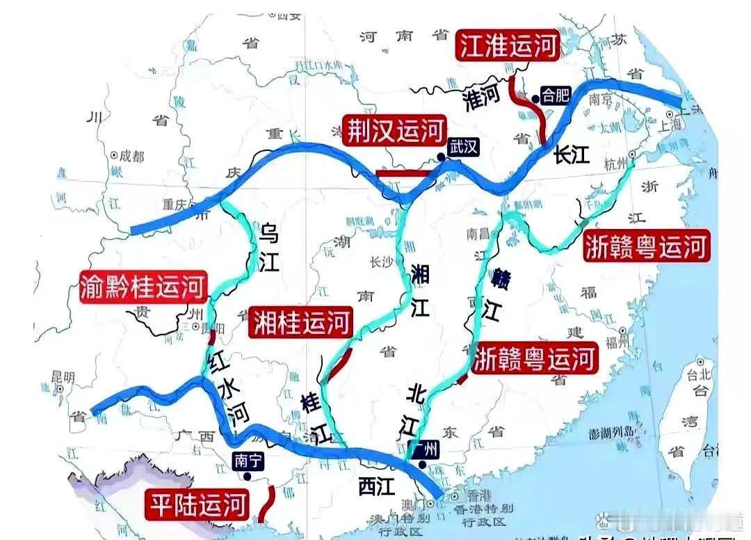 基建,挖运河。 中国五大内河航道分布图酷炫得像超级大片,让人一眼就能直观感受到水运那美得冒泡的魅力。运河开掘这事儿,那意义就跟盘古开天辟地似的,硬生生把不同水系给打通了。就拿京杭大运河来说,全长约1797公里,活脱脱一条巨龙横卧大地,沟通了海河、黄河、淮河、长江和钱塘江五大水系。在古代,它就是至关重要的交通大动脉,数不清的货物像汹涌的潮水,通过它运往五湖四海。还有长江航道,如同一条横贯东西的巨蟒,连接着众多经济发达地区。这些内河航道就像一条条魔法纽带,把各个地区紧紧地拴在一起。它们不仅极大地促进了经济发展,还承载着厚重得像小山一样的历史文化,简直牛到不行!