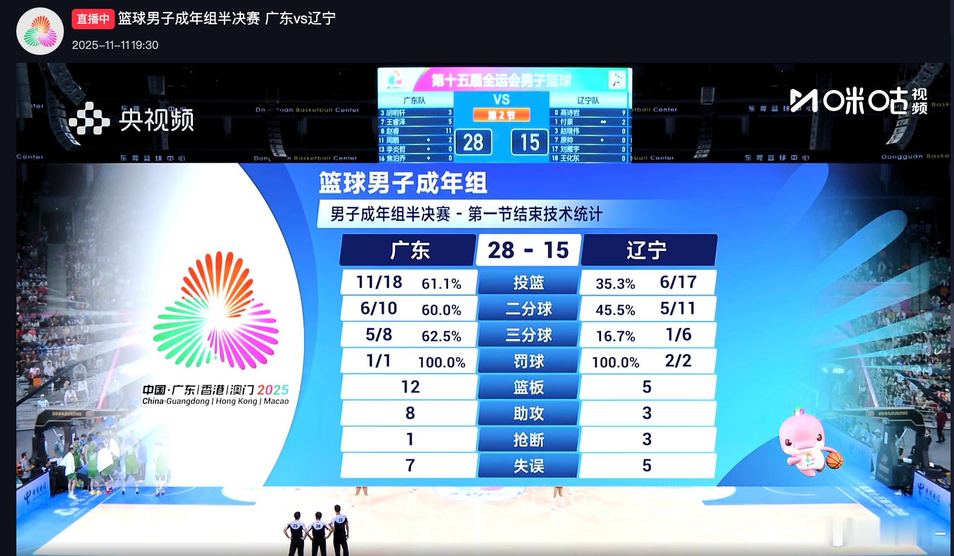 广东男篮和辽宁男篮在今天晚上打响。你们发现没有赵继伟只打了第1节。从第2
