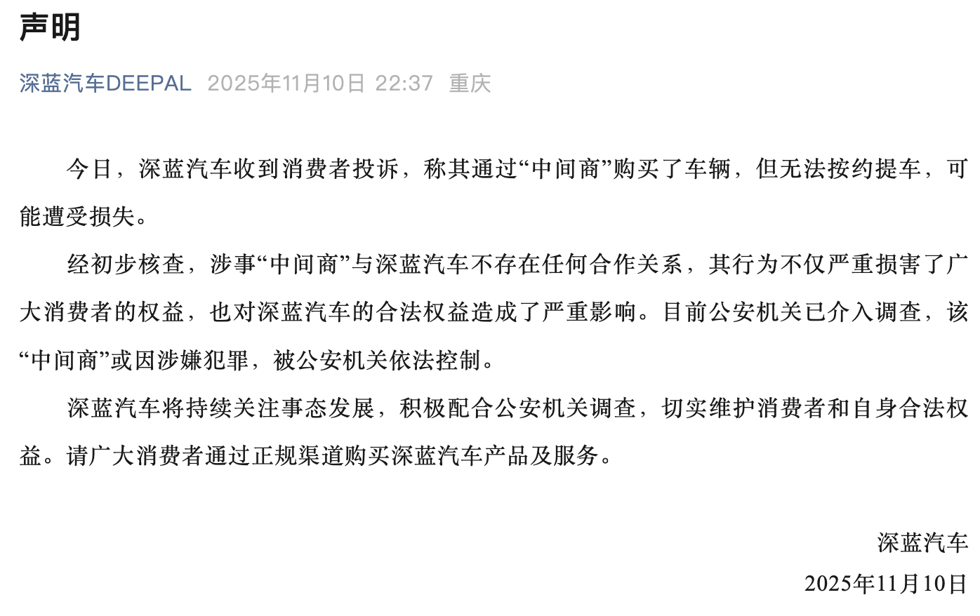 通过“中间商”买车无法按约提车?阿维塔和深蓝汽车发布声明