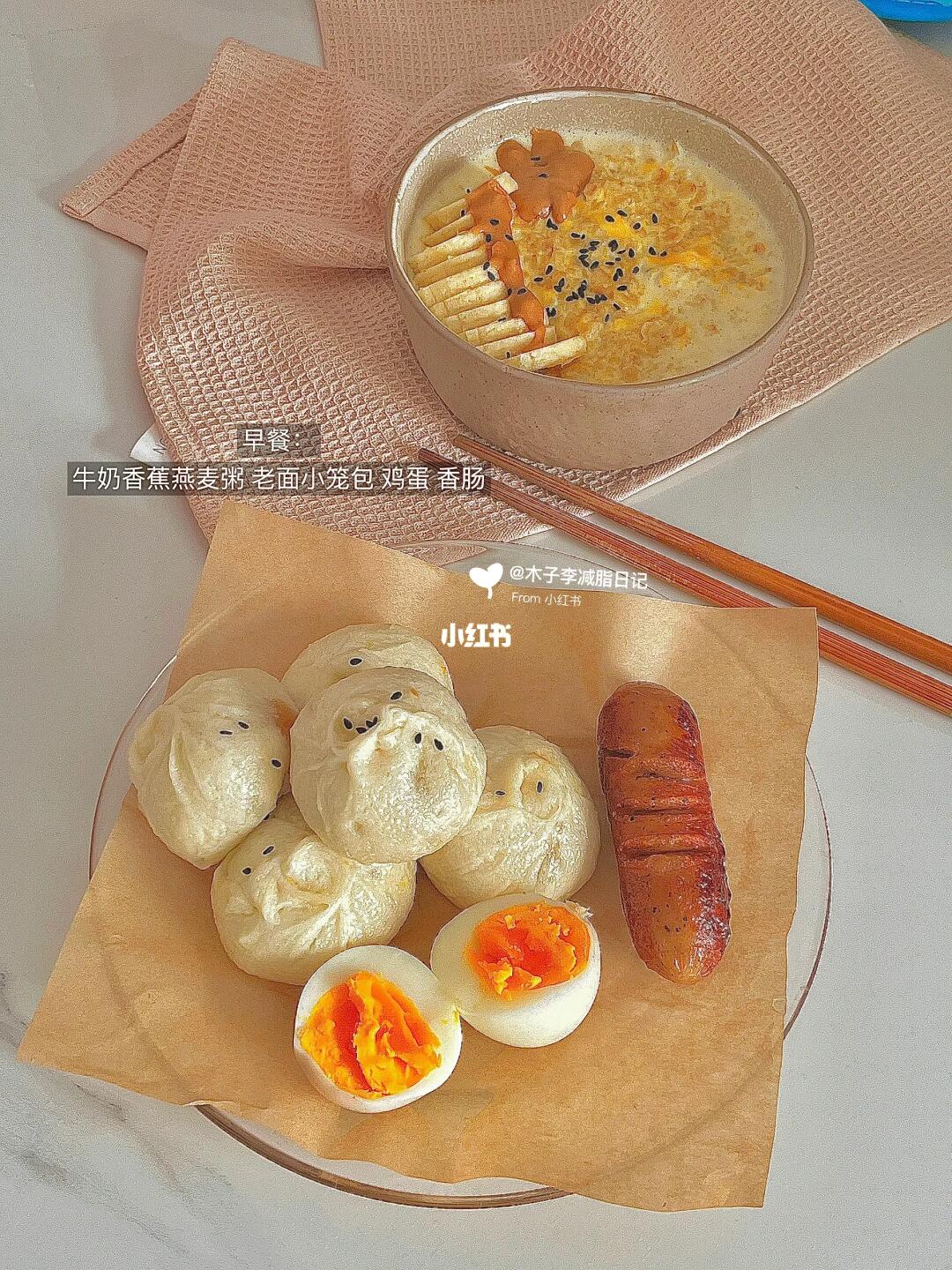 今日饮食: 早:小笼包➕鸡蛋➕肉肠➕牛奶燕麦粥 午:黑咖啡➕杏仁可颂 晚:咸蛋黄炒饭 喝水2000ml 运动🈚 -