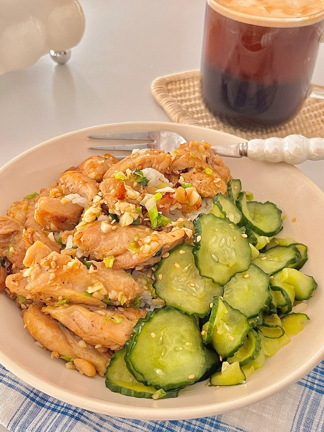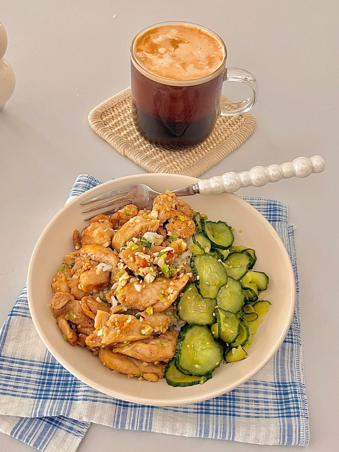 做菜我是认真的 太爱我的减脂餐啦,瞧这个蒜香黄油鸡腿又嫩又香,再搭配着盐渍黄瓜 吃起来清新脆爽,太适合减脂期吃啦,低卡高蛋白的一餐! 食材🥬:鸡腿肉 蒜末 葱花 黄油 黄瓜 做法再图上⬆️简单美味 快去试试吧~
