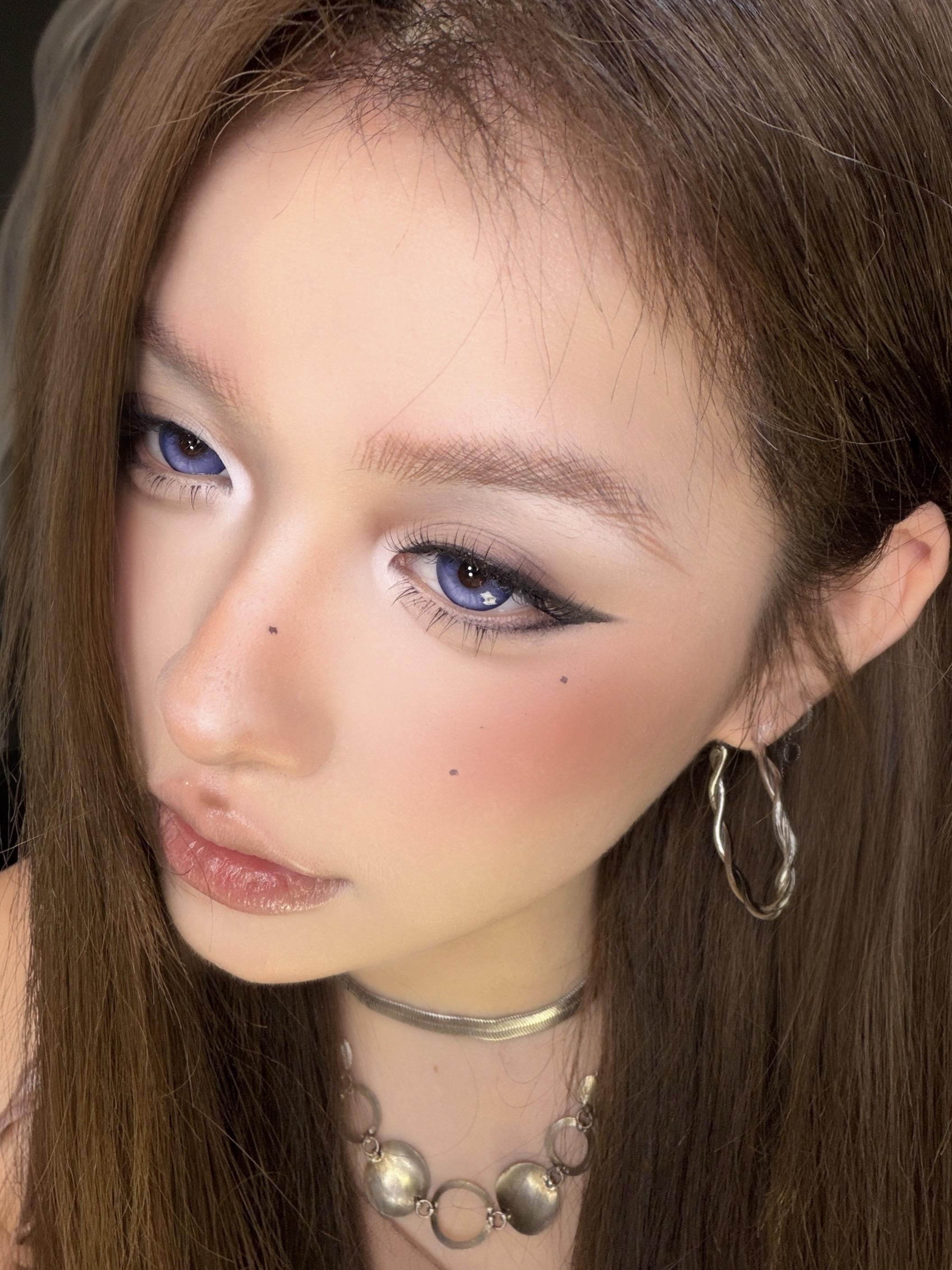 晚上走在街上,看见个少女,长得那叫一个好看。她脸上化着精致的淡妆,眼睛亮晶晶的。