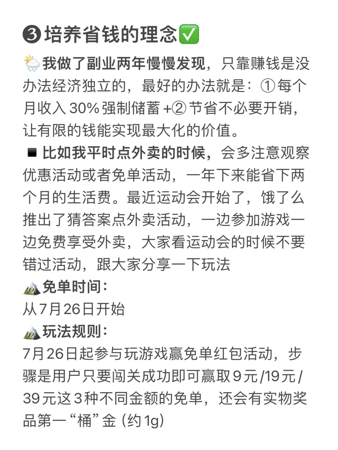 我做副业两年后:①每月收入30%强制储蓄+②节省不必要开销,最近饿了么推出玩游戏点外卖活动,边游戏边免单: