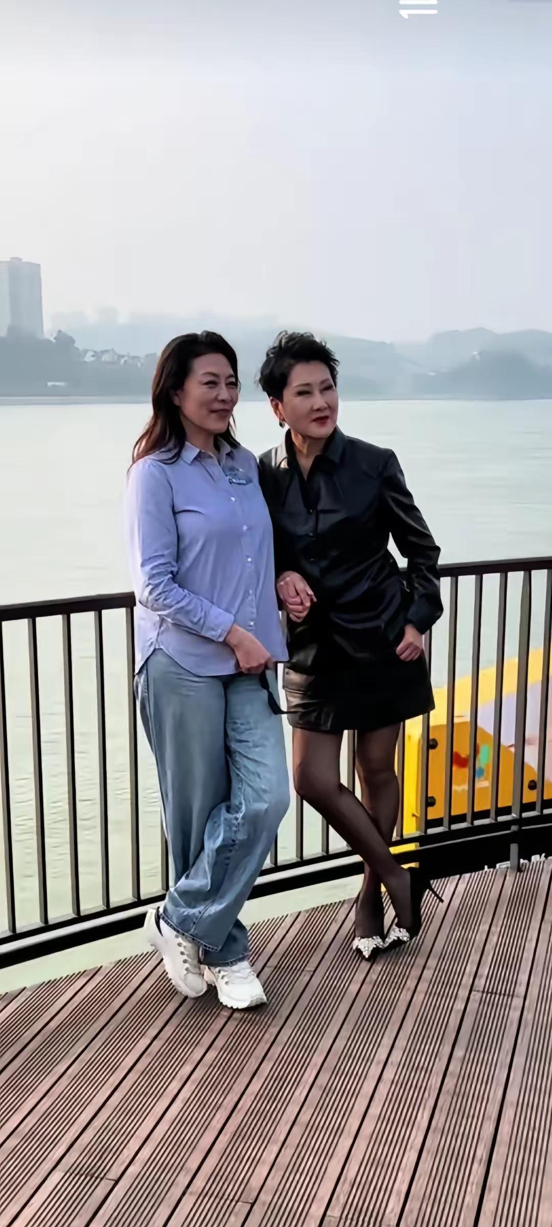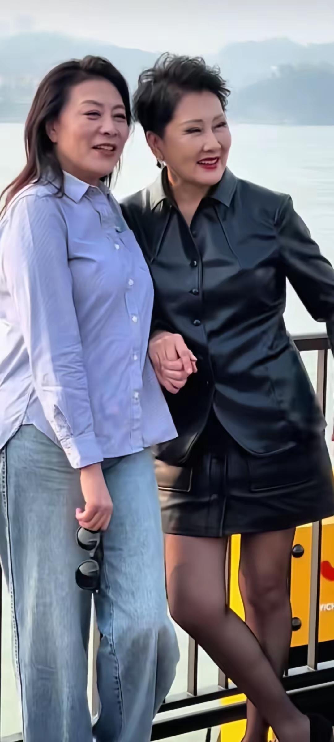 11月11日,张凯丽与岳红再次合影,见证友情! 原来她俩的关系这么好,犹如亲姐妹一一样,照片中的张凯丽身穿皮装套裙,脚踩高跟鞋,画着精致的妆容,打扮得活力满满! 而岳红身穿蓝色条纹衬衫,下搭蓝色牛仔裤,留着披肩发,素颜亮相,打扮得低调随性。 二人合影,笑容灿烂,两位实力派演员同框亮相,到底谁更剩一筹!