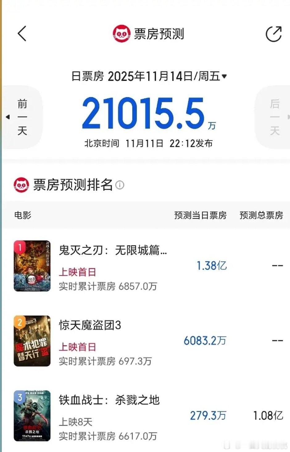 猫眼预测鬼灭票房首日1.38e,惊天魔盗团3首日6000w