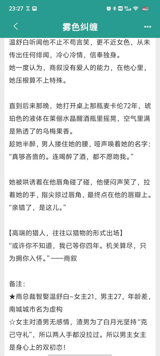 《雾色纠缠》 by白鸟一双 矜贵心机豪门大佬X明艳单纯建筑师 刚完结的文,一共106章 男主视角先婚后爱 女主视角暗恋成真