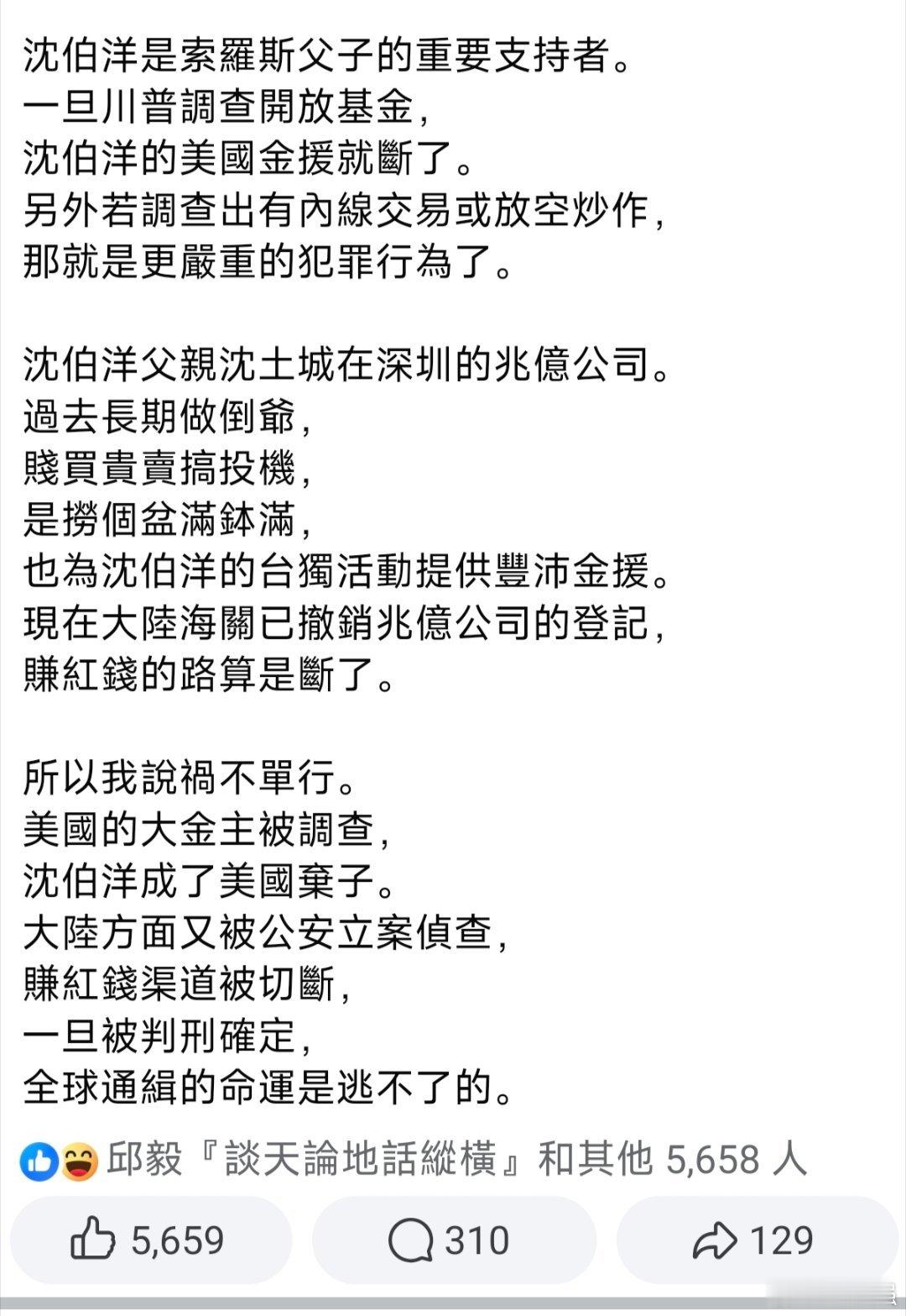 【沈伯洋“麻烦”又来了!】邱毅上午在社交媒体爆料:沈伯洋的大麻烦又来了!这次是来自美国……,别急!接踵而至还会源源不断……