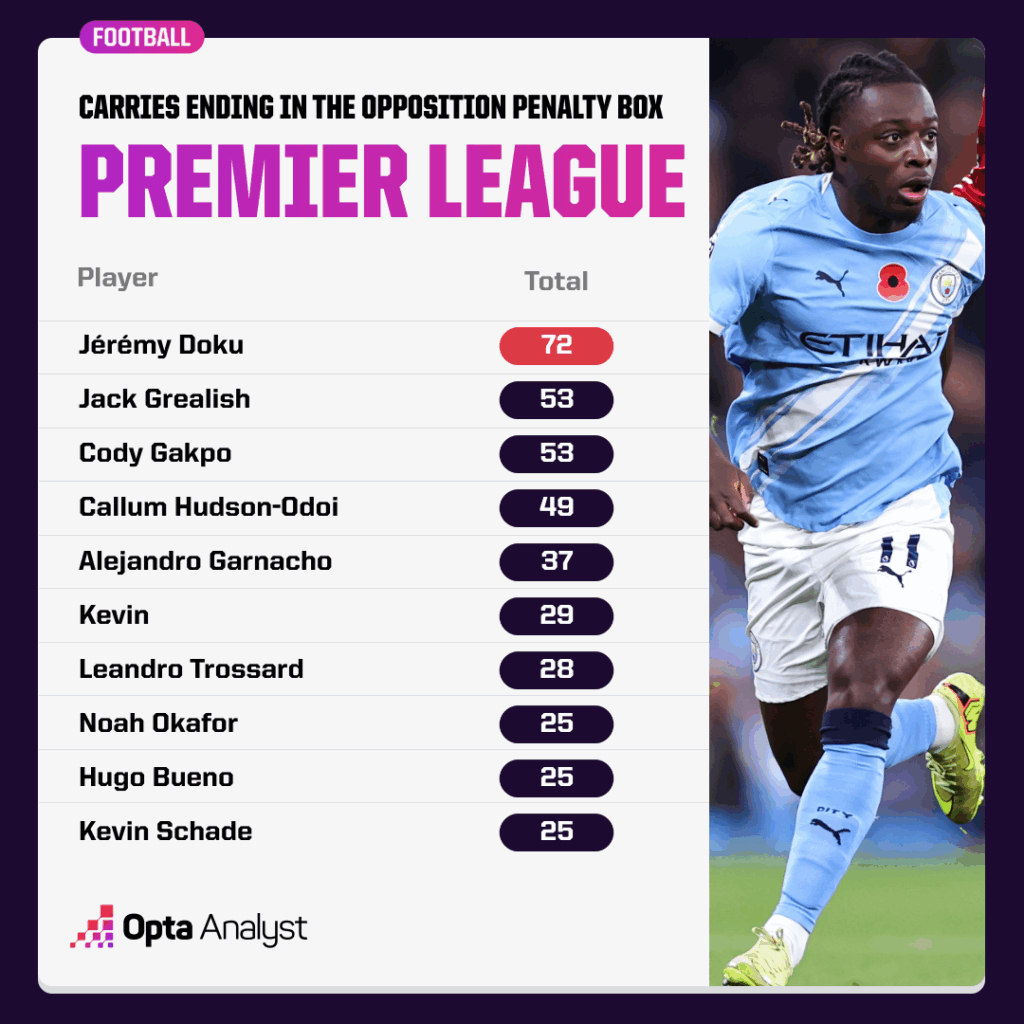 英超仅有三支卫冕冠军在前11轮拿到的积分比2025-26赛季的利物浦(18分)更少。上一支在开局11场比赛仅获18分及以下,却仍能夺得英格兰顶级联赛冠军的球队,是1986-87赛季的埃弗顿👀加克波是前11轮英超带球后参与射门次数最多的球员,其中12次是他带球推进至少5米后亲自完成射门,另外8次则是他带球突破后为队友创造出得分机会。若仅统计带球后自身射门次数,加克波(12次)落后于曼联的马修斯·库尼亚(15次);而带球后创造机会次数最多的球员是卡勒姆·哈德森-奥多伊和杰里米·多库(均为11次)。而多库(72次)则是带球闯入对手禁区次数最多的球员,比排名第二的杰克·格拉利什和科迪·加克波(均为53次)多出19次。很少有球员(若存在的话)能像这位比利时边锋那样,在狭窄空间中灵活穿梭并为队友创造机会,而他出色的带球能力也让他成为闯入对手禁区次数最多的球员。参与射门次数最多却未进球或助攻的球员是弗洛里安·维尔茨(28次)他在11场联赛创造的16次机会均未转化为助攻(这很大程度上并非他的责任),同时自己也完成了12次射门却颗粒无收。当年蒂埃里·亨利加盟阿森纳时也是22岁,他的英超生涯开局同样艰难——前12次出场仅打入1球且无助攻。但之后一切都步入正轨,而后续的故事,我们都已耳熟能详……