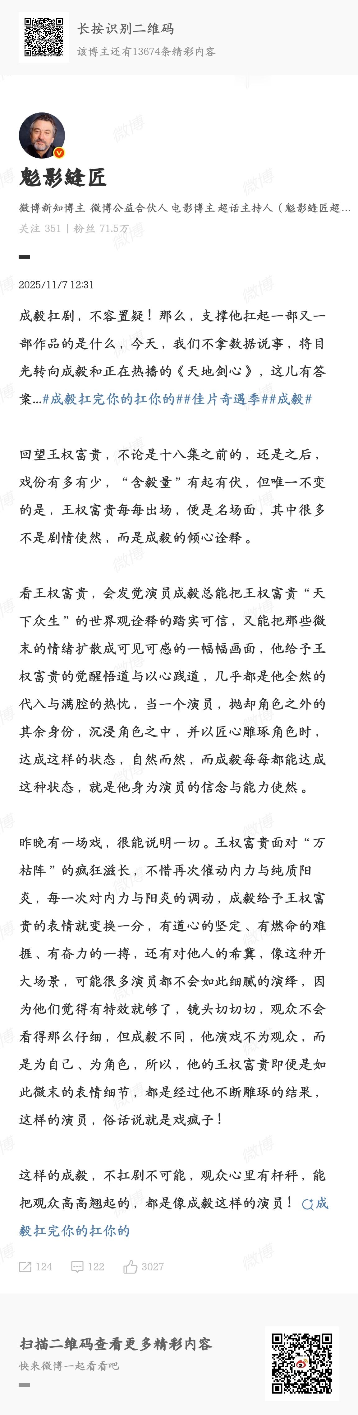 成毅扛剧,不容置疑!那么,支撑他扛起一部又一部作品的是什么,今天,我们不拿数据说