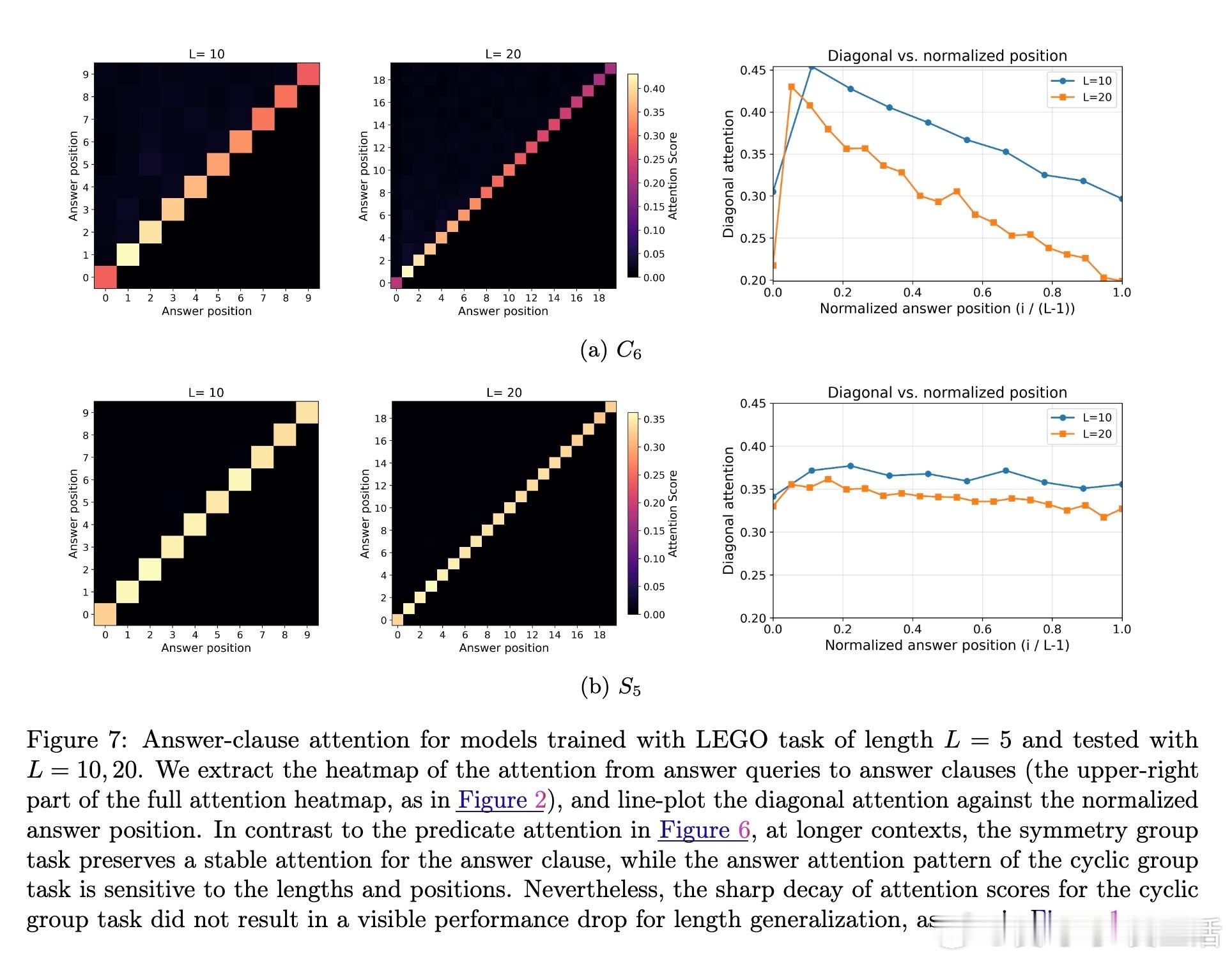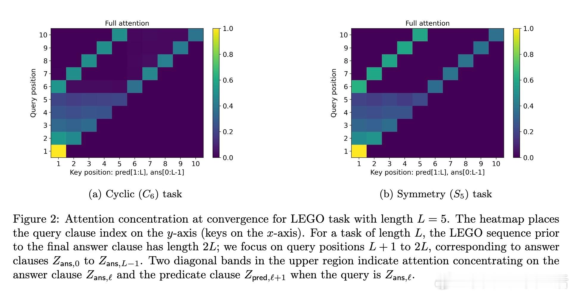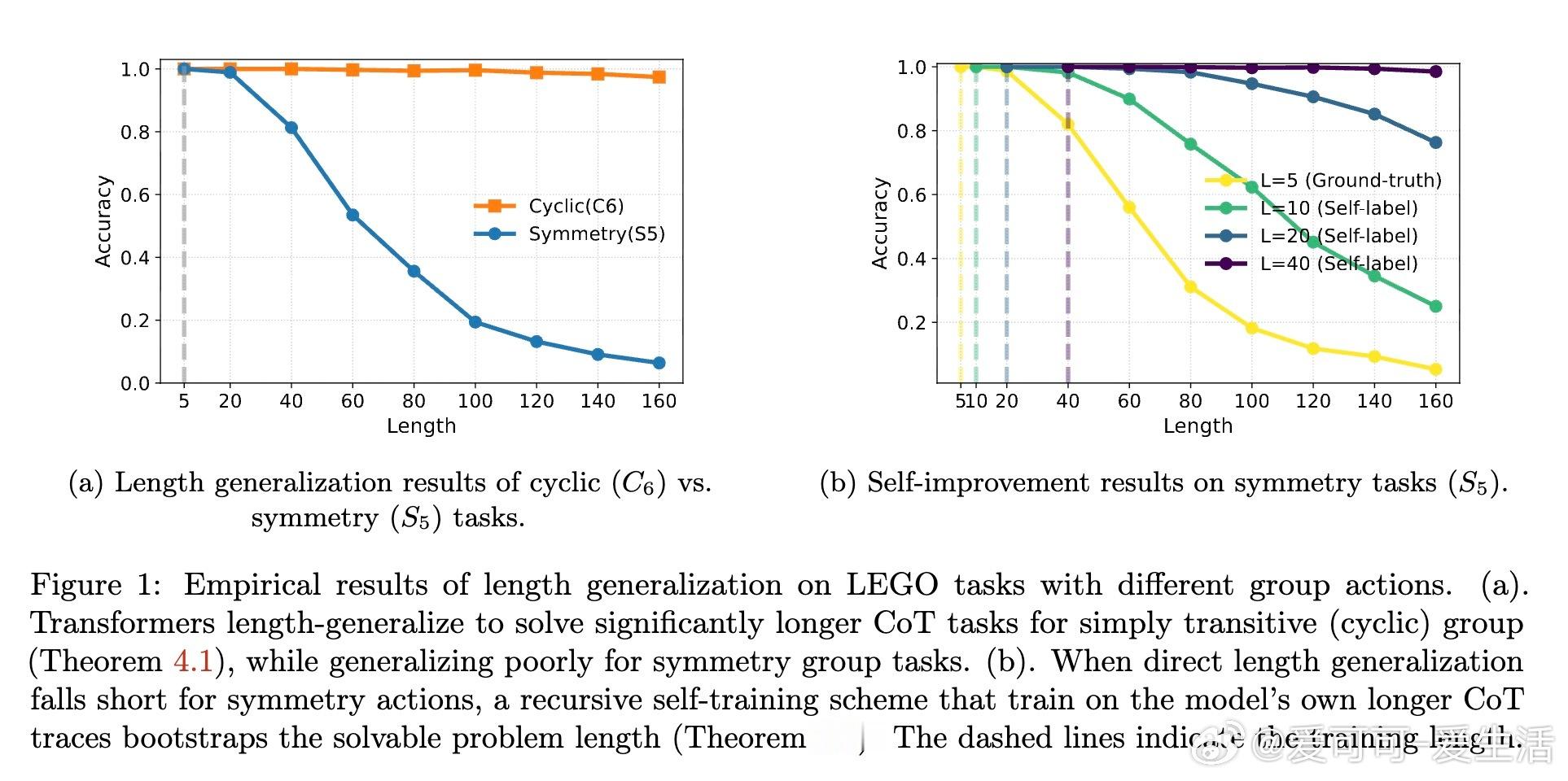 [LG]《Transformers Provably Learn Chain-of-Thought Reasoning with Length Generalization》Y Huang, Z Wen, A Singh, Y Chi... [University of Pennsylvania & CMU] (2025) 在人工智能领域,推理能力至关重要,尤其是解决复杂问题时需要更长、更深的思维链(CoT)。但一个根本问题是:模型能否通过学习的推理模式,跨越训练长度限制,解决更长链条的任务?本文给出了理论答案。该工作聚焦于Transformer模型在合成的状态追踪任务(LEGO)上的梯度下降训练,首次提供了学会CoT推理并实现长度泛化的优化保证。主要贡献如下:1. CoT推理的可学性与长度泛化保证 研究证明,一层无位置编码(NoPE)的Transformer通过梯度下降,在简单传递群作用(simply transitive group actions)下,能直接从短链训练泛化到多倍长度任务,且准确率接近1。对称群作用(symmetry group actions)则只获得常数倍泛化。2. 注意力集中机制揭示泛化差异 泛化能力取决于群作用的代数结构。简单传递作用促使注意力高度集中于关键上下文,支持强泛化;而对称群存在大量“干扰项”,注意力分散,限制泛化幅度。研究深入解析了这一机制。3. 递归自训练扩展推理长度 针对对称群作用泛化受限的问题,论文设计了递归自训练方案:模型用自身生成的CoT轨迹作为新训练数据,逐步提升可解的链长,理论上可达到最大长度,实现自我引导的能力提升。4. 突破复杂度界限,实现非平行任务的学习 研究首次证明,常数深度Transformer通过CoT能有效学习NC1完全问题(复杂度超越TC0),填补了表达能力与可训练性之间的鸿沟。5. 详实实验证实理论预测 实验使用循环群C6和对称群S5的LEGO任务,验证了泛化行为和注意力模式。递归自训练显著提升了对称群任务的推理长度,注意力热力图显示关键上下文检索的明确模式,且注意力聚焦与任务结构紧密相关。这项工作不仅为Transformer的CoT推理能力提供了首个严格优化理论,也为理解长上下文推理中的“context rot”现象提供了新视角:注意力的稀释导致性能下降。结果提示,无位置编码有助于泛化,因为模型基于内容而非位置检索信息,避免了位置嵌入带来的长度绑定限制。未来,结合局部聚合机制(如Cannon层)和递归自训练策略,有望进一步提升实际语言模型的长链推理能力和泛化性能。全文详情及数学证明见:arxiv.org/abs/2511.07378推理是AI的灵魂,理解其学习与泛化机制,是迈向真正智能的关键一步。正如本文所揭示:“长度的极限,不是模型的极限。”