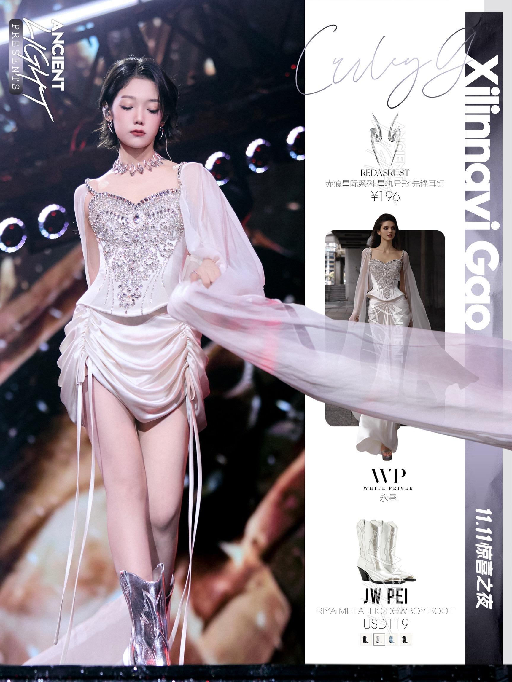 一键切换化身月光骑士🌔 希林娜依高 身披薄纱在肩,手臂加持3D铠甲手套。化身月光骑士穿搭暗藏巧思,光影下尽显酷飒气场,将实力唱将的专业与时尚态度诠释得淋漓尽致。 👗GOWN:WHITE PRIVEE 👢FOOTWEAR: JW PEI