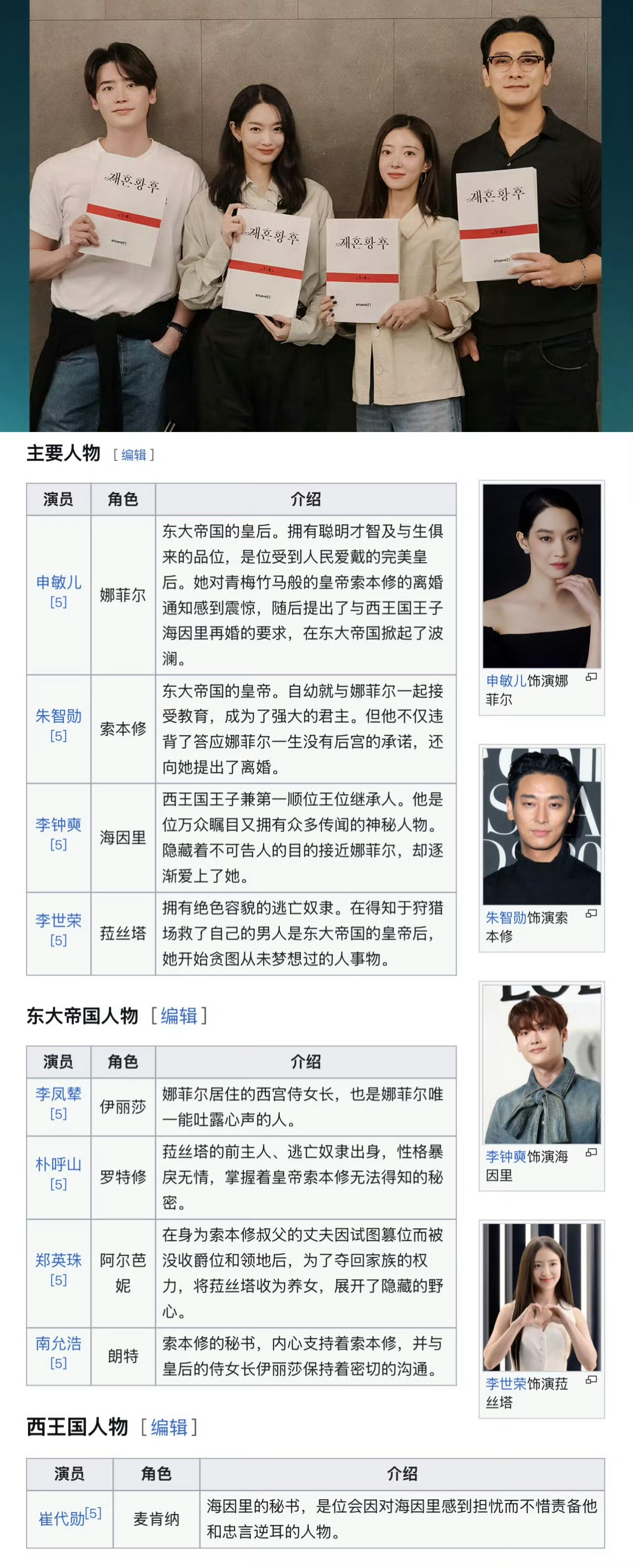 李浚赫x姜汉娜特别出演韩剧 ,两个人在剧中饰演夫妻,合作申敏儿x朱智勋x李钟硕x李世荣这剧卡司太牛了吧李浚赫饰演先王沃顿三世,海因里(李钟硕 饰)的哥哥姜汉娜饰演沃顿三世(李浚赫 饰)的妻子,海因里(李钟硕 饰)的发小兼初恋剧情:漫改,该剧讲述了东大帝国的完美皇后纳维耶(申敏儿 饰)在知道皇帝丈夫(朱智勋 饰)想把情妇(李世荣 饰)变成皇后之后,选择离婚,如果在这里不能成为皇后,就决心在其他地方成为皇后而展开的故事!!!于是女主(申敏儿 饰)就嫁给了与东大帝国经济实力相当的西王国的王位继承人(李钟硕 饰)。导演:《听见你的声音》《匹诺曹》《医生耀汉》赵秀沅