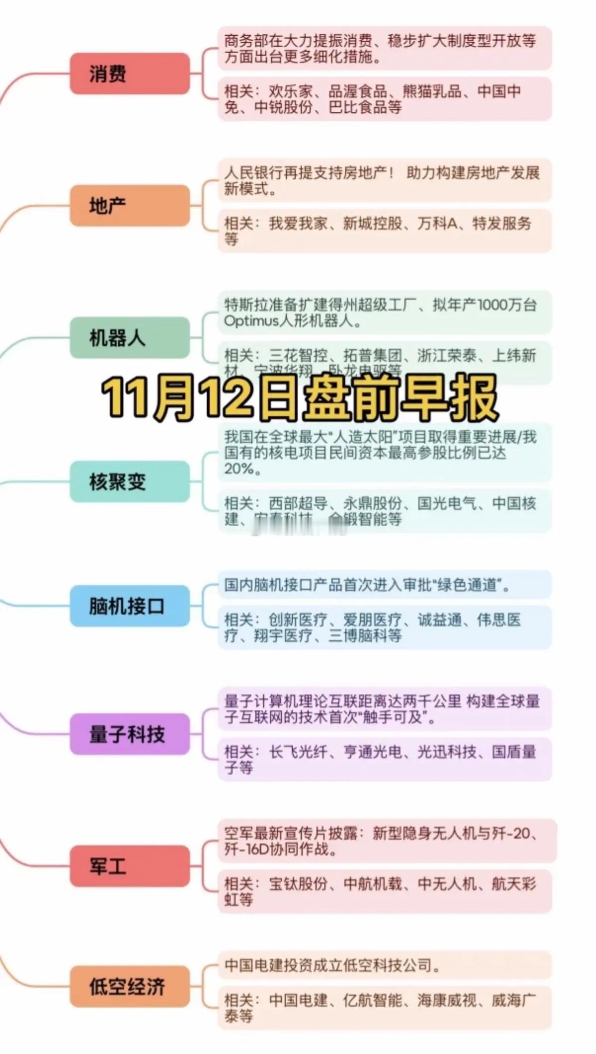 盘前 财经新闻热点!1.消费2.地产3.机器人(特斯拉再建超级工厂)4.核聚变,脑机接口5.量子科技,军工,低空经济