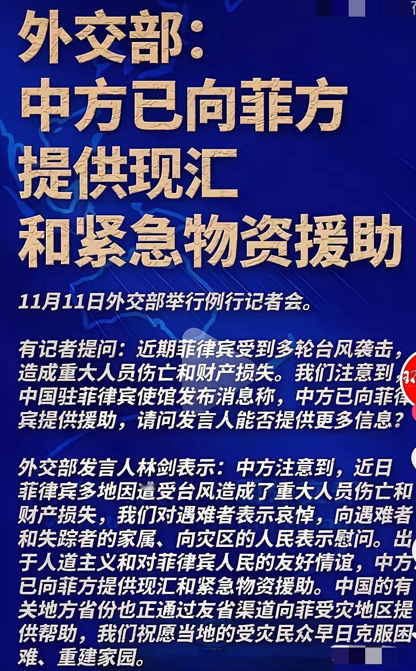 果不其然! 中国还是给遭灾的菲律宾伸出了援手,可这消息一出,多少国人心里不是滋味? 不是咱冷血,实在是这援助的分寸太难拿捏——送少了被说敷衍,送多了被曲解成别有用心,甚至还会被当成“怕了”。 关键是菲律宾一边拿着咱过去的援助,一边在南海频频挑衅,转头还把部分物资挪作他用,这种“端起碗吃饭,放下筷子骂娘”的操作,谁看了不寒心? 咱的善意从不是廉价的“老好人行为”,而是基于人道主义的底线,可善良得有锋芒,援助更该看对象。真正的睦邻友好是相互的,不是单方面的热脸贴冷屁股。