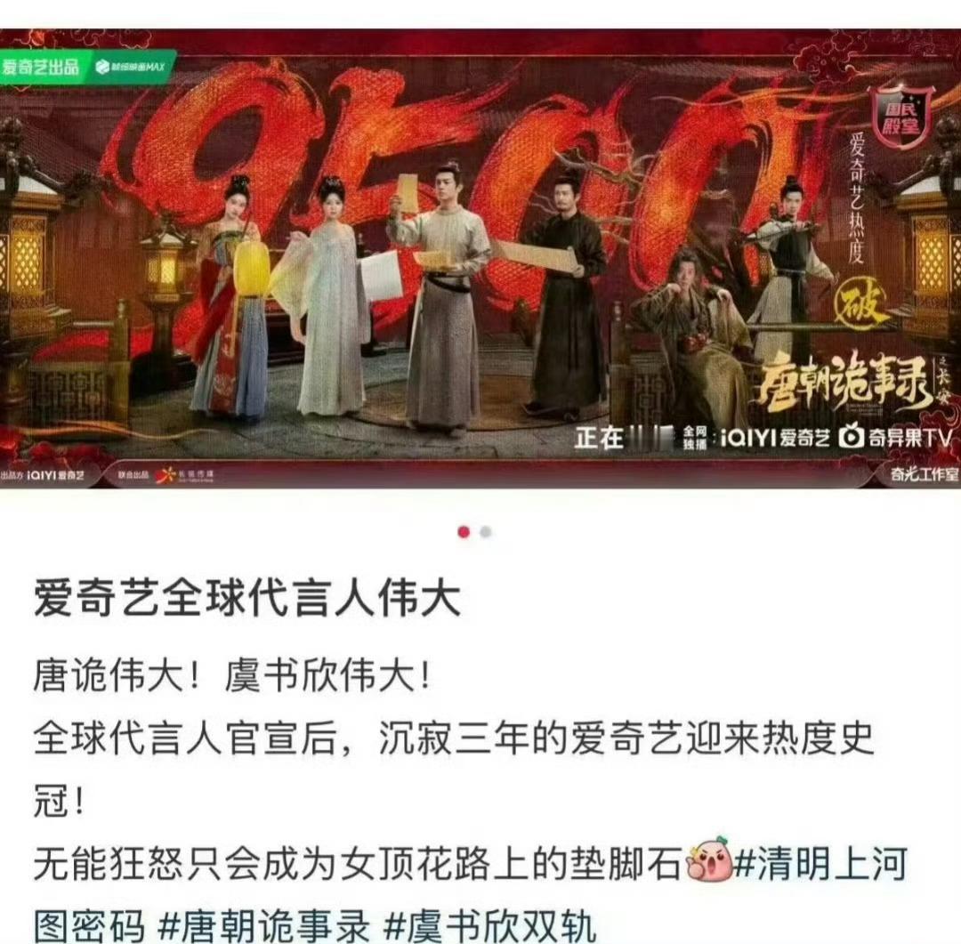 虞书欣粉丝:虞书欣代言爱奇艺之后唐诡破万了,虞书欣伟大!