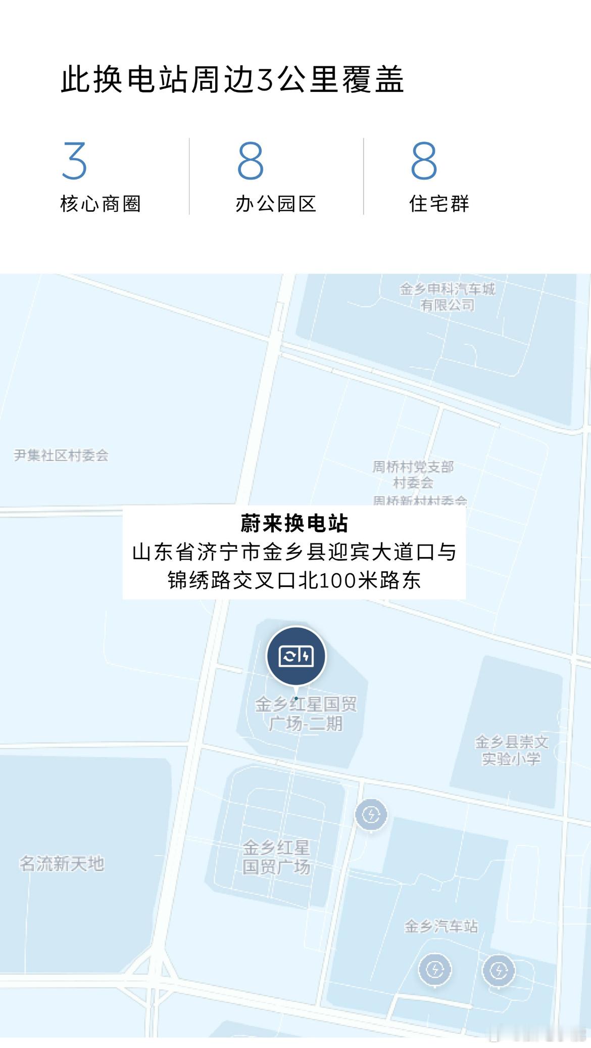 蔚来换电站 | 济宁金乡红星国贸 上线周边3公里覆盖3大核心商圈、8大住宅群、8大办公园区截至11月12日,蔚来已在山东省布局205座换电站,在全国布局3564座换电站。