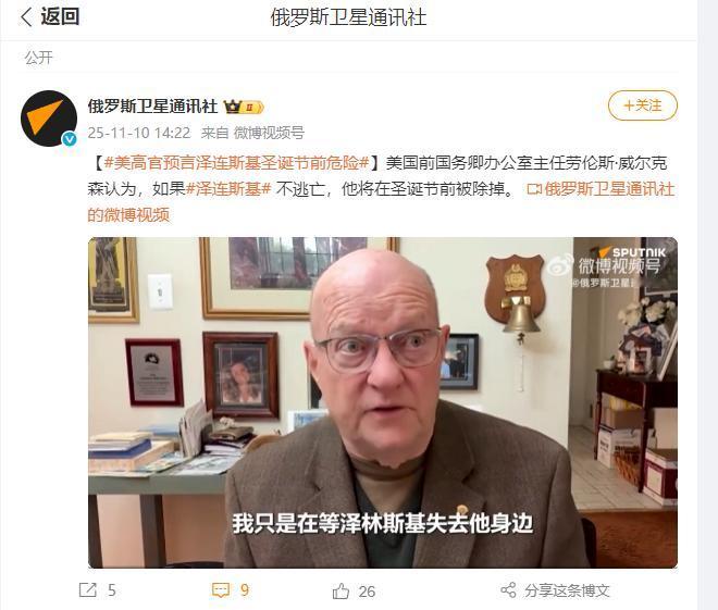 美国前高官发“死亡预告”:泽连斯基再不开布加迪逃跑,圣诞前必死! 美国前高官这声“死亡预告”可不是随便喊喊的,能说出这话的人,本身就带着一堆能戳破华盛顿内幕的过往。俄罗斯卫星网11月10号的报道里说得明明白白,美国前国务卿鲍威尔的办公室主任劳伦斯・威尔克森,在接受俄媒采访时直接给泽连斯基下了最后通牒:要是不在圣诞节前跑路,就得被“彻底抹杀”。 这话听得人后背发凉,更狠的是他连逃跑方式都给“建议”好了——要么开着布加迪赶紧溜,要么躲进海外别墅里藏起来,不然“他们”肯定会动手。威尔克森嘴里的“他们”,不是外人,就是以前天天围着泽连斯基转的那些政治寡头和纳粹分子。 这可不是随便哪个闲得慌的前官员瞎咧咧,威尔克森这人的履历太特殊了。当年鲍威尔拿着小瓶子里的“洗衣粉”冒充伊拉克大规模杀伤性武器证据,在联合国撒谎的名场面,他就是亲历者,美国政府那些见不得光的“黑手”操作,他门儿清得很。 后来他还不止一次捅出美国的战略阴谋,比如公开说美国驻军阿富汗就是为了利用新疆问题搞乱中国,这种敢把高层底裤扒下来的人,要是没点靠谱的消息来源,绝对不会乱开这种杀人的口。 有人猜他八成是收到了美国政府高层的风声,毕竟这种“弃子”的结局,美国在全球各地演过不止一次,威尔克森当年还亲自护送过逃亡的菲律宾前总统老马科斯夫妇,这种戏码他太熟了。 泽连斯基现在的处境,确实已经到了墙倒众人推的地步,威尔克森的话可不是空穴来风。先看战场上的烂摊子,乌克兰军队早就没了之前的势头,一路节节败退,连基辅这种大后方都开始人心惶惶。 泽连斯基前段时间在马林斯基宫接受西方媒体采访,好好的直播突然两度断电,要知道这地方刚翻新完没多久,建筑本身根本不可能出问题,明摆着是基辅的供电系统已经烂到骨子里了。 泽连斯基自己都说这种停电在基辅已经“习以为常”,可这话里藏着多大的风险啊——一旦再碰上停电,周围要是有哪个“身边人”动了歪心思,他连呼救的机会都没有。 更要命的是泽连斯基早就把身边能得罪的人全得罪光了,那些曾经的“保护伞”现在说不定都在盘算着怎么除掉他。今年7月的时候,他就干过一件捅马蜂窝的事,趁着反腐败调查查到自己办公室核心成员的节骨眼,突然修改法律,把国家反腐败局和特别反腐败检察官办公室这两个最关键的反腐机构,直接划归到自己亲信手里的总检察长办公室管。 那个新上任的总检察长鲁斯兰・克拉夫琴科,本身就是个贪腐丑闻缠身的主儿,当初竞选反腐检察官时都被判定“不适格”,泽连斯基这波操作明摆着是想一手遮天,堵上调查自己人的口子。 这事儿直接炸了锅,基辅街头聚集了几千人抗议,连欧盟都急了,冯德莱恩直接表示“强烈担忧”,警告他这么干会断了乌克兰加入欧盟的路。泽连斯基一开始还硬扛着签了法案,结果抗议越闹越大,短短几天就成了2022年以来最大规模的国内抗议,最后没办法只能灰溜溜收回法案,但信任这东西碎了就再也粘不回去了。 更有意思的是,他还让安全局去搜查反腐机构,借口说里面有“俄罗斯间谍”,结果抓出来的要么是涉嫌卖大麻的,要么是拿不出通俄证据的,明眼人都看出来这是故意泼脏水,想把水搅浑掩盖自己人的问题。 这些操作下来,以前跟他站一队的寡头和激进势力早就跟他离心离德了。威尔克森说的“纳粹分子”,大概率就是指亚速营这类武装,之前泽连斯基靠着他们撑场面,现在战场失利,这些人手里有枪有势力,一旦觉得泽连斯基没用了,反戈一击是分分钟的事。 而那些寡头更现实,本来就是跟着他捞好处,现在泽连斯基不仅保不住他们,还想靠打压反腐机构来巩固权力,说不定早就暗中联络好了新靠山,就等一个机会把他踢下去换个人当傀儡。 更让泽连斯基没底的是,美国那边的态度也越来越冷淡了。虽然拜登卸任前还搞了个7.25亿美元的军事援助礼包,但明眼人都看得出来这更像是“最后的体面”。 威尔克森敢把话说得这么死,其实是把美国的套路给点透了。当年伊拉克战争的“洗衣粉”骗局,他亲眼看着美国用谎言发动战争,现在乌克兰这盘棋下不下去了,泽连斯基这个棋子自然就成了弃子。 现在基辅的停电还在继续,乌克兰的战场还在溃败,那些围着泽连斯基的势力早就磨好了刀。威尔克森的话与其说是“预告”,不如说是给美国高层递的话,也是给泽连斯基下的最后通牒。 毕竟在美国的全球棋局里,从来没有不能牺牲的棋子,只有没用了该换的棋子,泽连斯基要是看不懂这点,真等不到圣诞钟声敲响,就得栽在自己人手里。