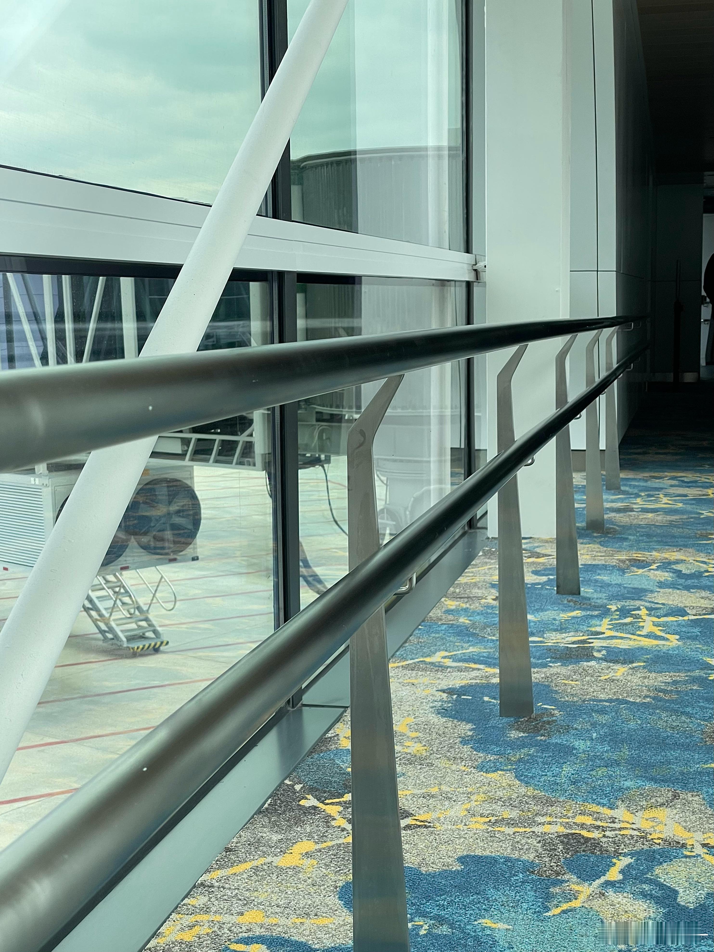 从装修角度看白云T3航站楼花巨资了:多了多样组合的候机座椅,还有家居座椅,适配不同屁股以及候机姿势;在交汇区专设老弱病残休息区,不是在角落好评,也不是清一色商务味休息室。用了跟深圳机场同款悬挂超薄双面大广告屏;男厕尿兜加长,防滴尿设计;大面积无缝地毯,夸张,很贵也很考验剪裁收边;廊桥前的通道,三十多米长的不锈钢双高度扶手(照顾老人小孩高度)竟然是无缝设计,至少视觉上是一体的嵌入式饮水机与垃圾桶,过道无阻碍。人文关怀,除了花大钱,还得有代入感。只是现在市区去T3太折腾了,地铁到不了,城际班次太少,人少得值班保安都打瞌睡了