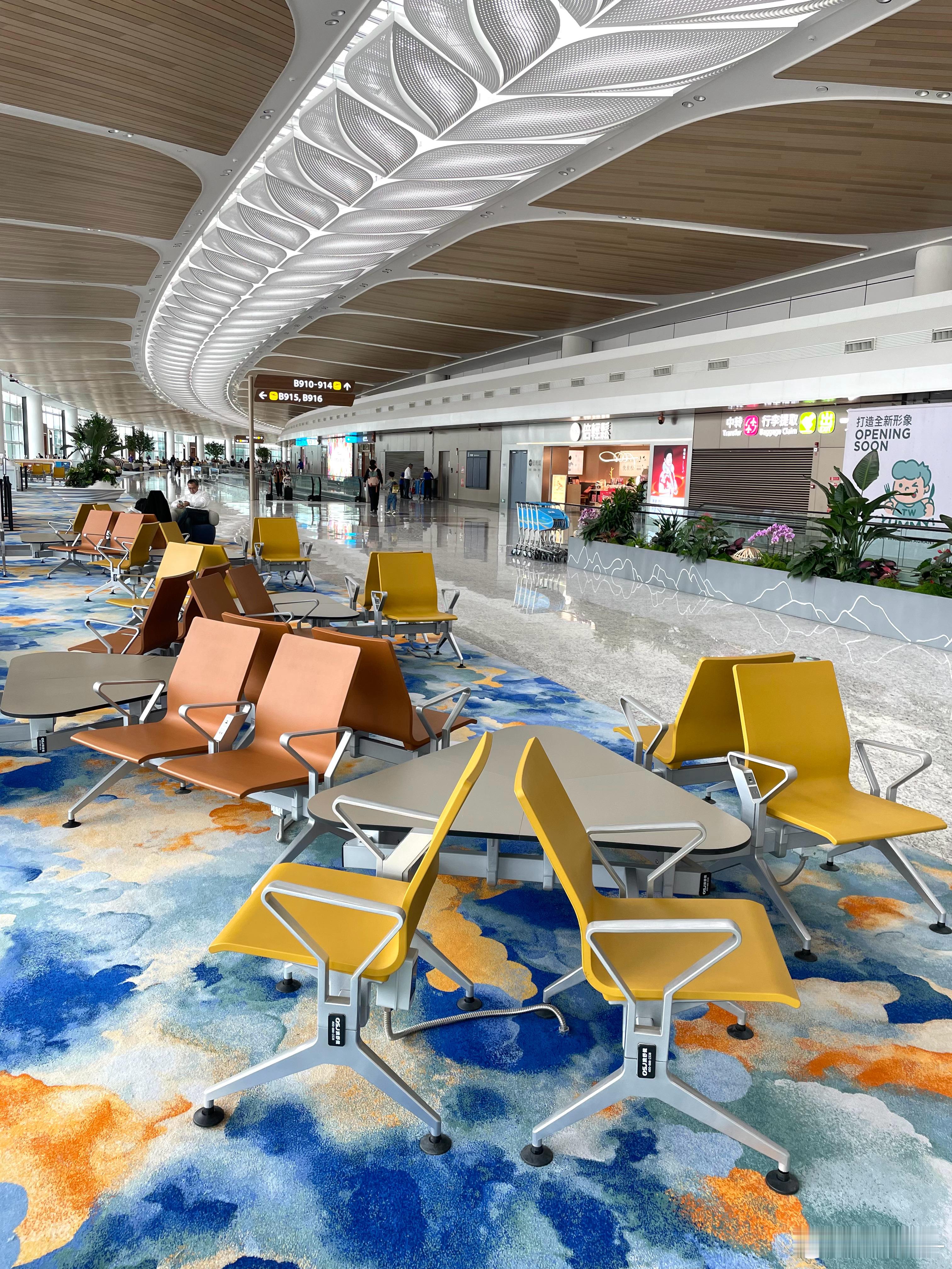 从装修角度看白云T3航站楼花巨资了:多了多样组合的候机座椅,还有家居座椅,适配不