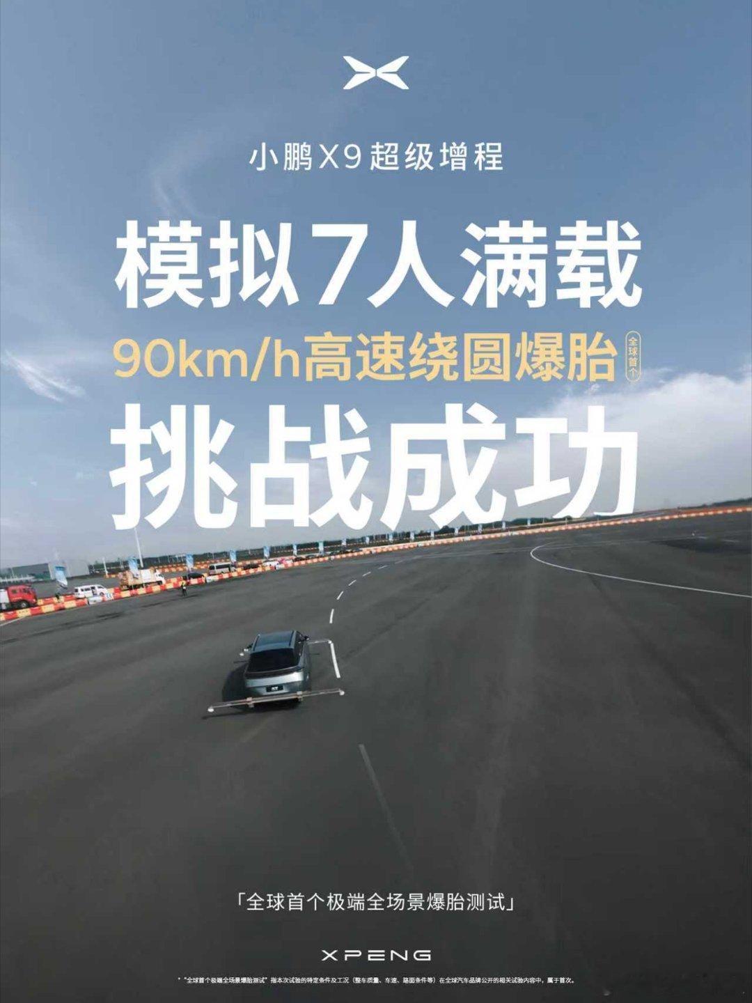 小鹏X9超级增程太顶了!1602公里续航够能跑,安全更是硬核到炸!全球首个极端全场景爆胎测试直接通关,7人坐满,暴雨、积水、急弯全遇上,60到160km/h速度爆胎,居然还能稳得住、刹得停,家用大7座选它,心里太有底了!