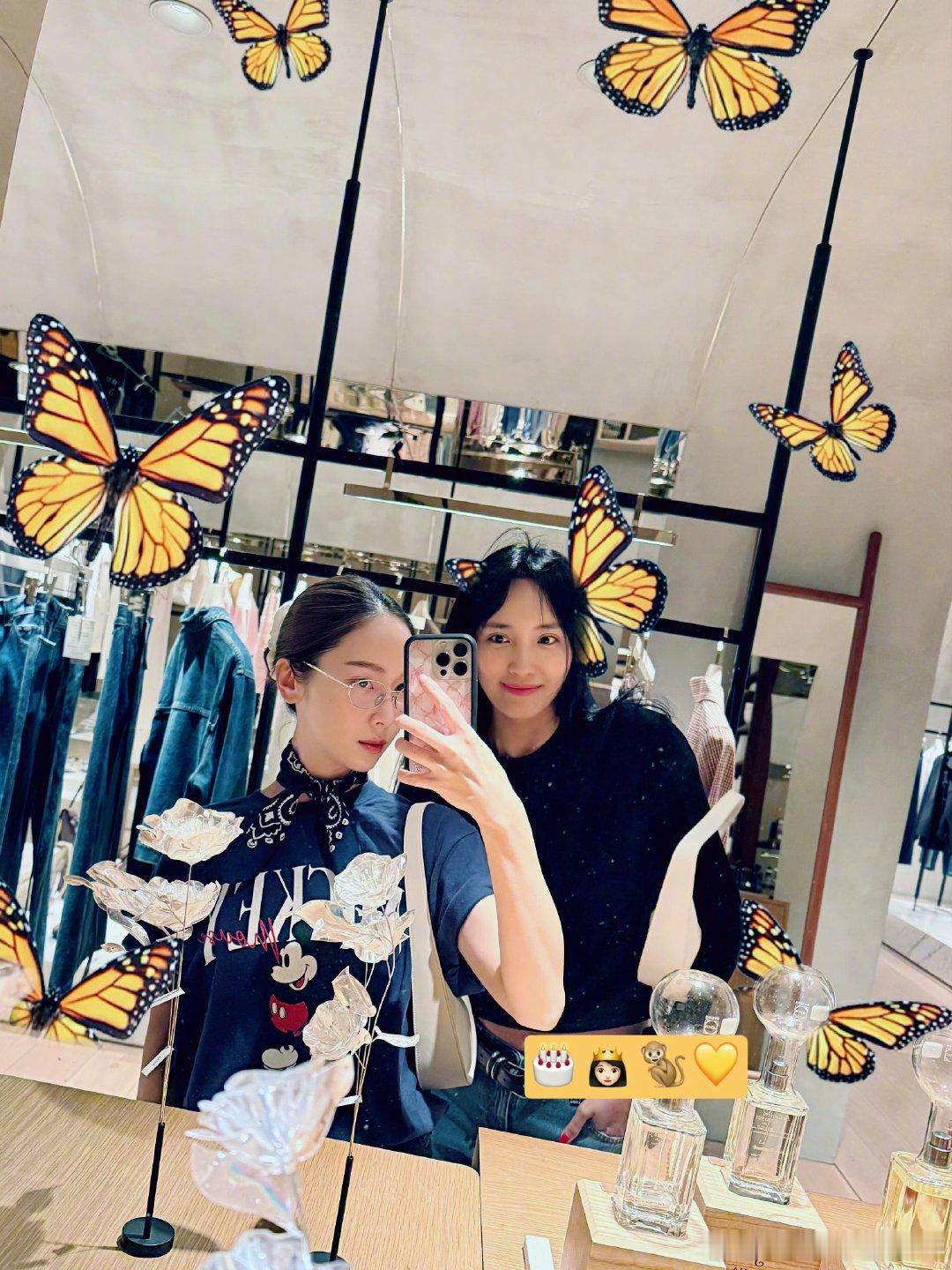 郑秀妍零点给王紫璇庆生,连续四年没断过。文案里说想念一起的旅行和长谈,合照里俩人戴一样的草帽,镜前比耶的时候贴纸都要选“Birthday Girl”