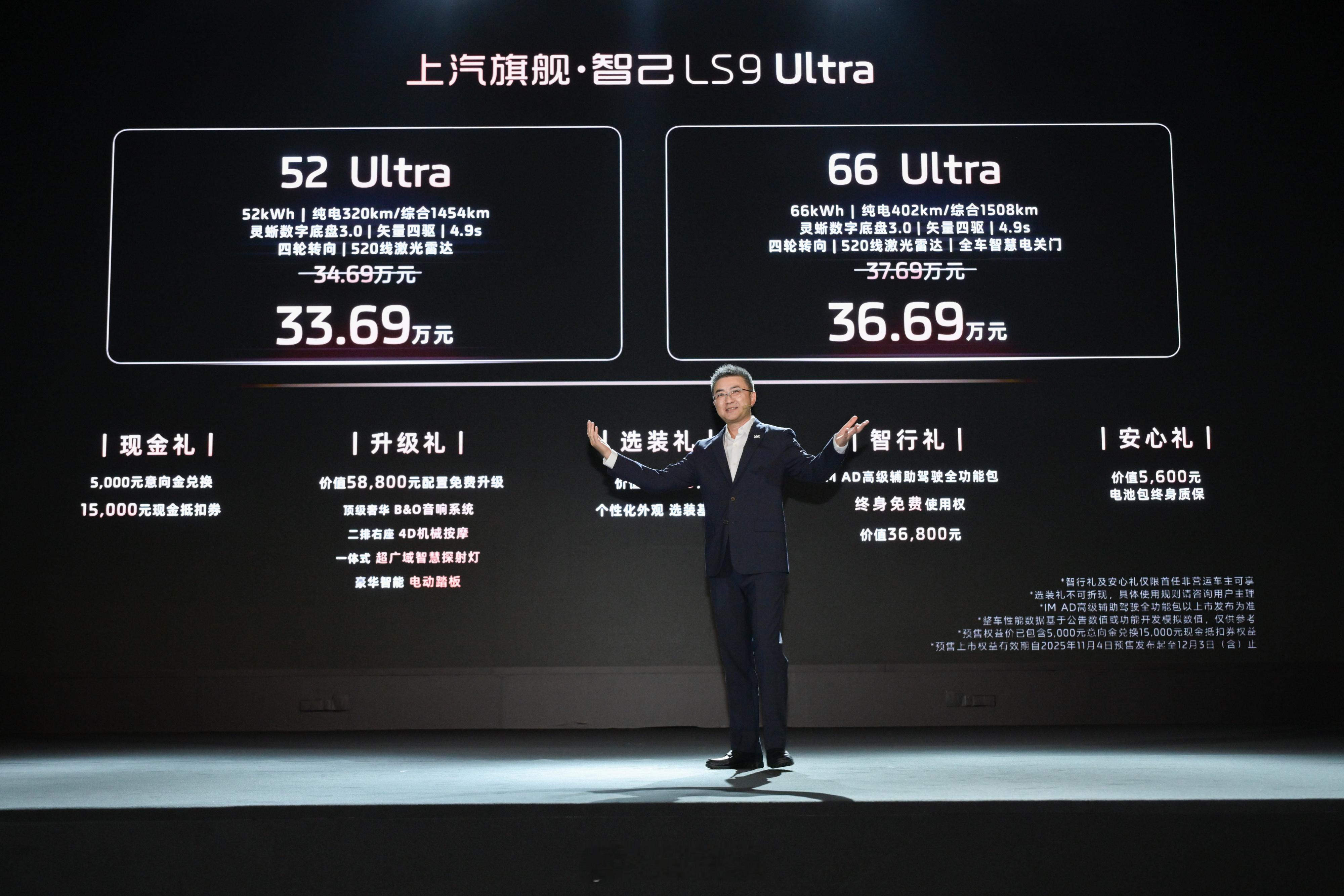 智己的大旗舰LS9终于发布了,又是一款30万级别的大六座SUV,车长5米3,外观看着确实很气派,而且智己还上了四轮转向,转弯半径只有4.95米 一共有52kWh和66kWh两种版本电池可选,最高能到402km的纯电,1508km的综合CLTC续航,油电综合折算下来2.81L 冰箱彩电大沙发全配齐,还有B&O音响,4D机械按摩座椅和户外套装,无论是城市代步,高速巡航还是露营都很合适,预售价33.69万-36.69万,你们觉得咋样?