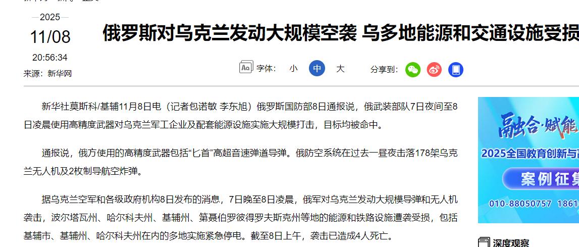 乌克兰全黑了!核打击前最后警告,俄军发射13枚“全球禁止”导弹! 从11月8号凌晨到9号,乌克兰过了开战以来最惨的两天,全国都停电的消息一下子传遍了全世界。基辅、哈尔科夫、敖德萨这些大城市,电表彻底不动了,连紧急电话都打不通,那叫一个绝望。 乌克兰能源部急急忙忙发了通知,说得特别直白,俄军的导弹照着全国七座关键变电站精准打过去,其中四座彻底毁了,想修好至少得一个星期。哈尔科夫有居民拍视频发网上,说家里冰箱里的冻肉都化水了,家里老人用的呼吸机全靠备用发电机撑着;敖德萨港的渔民更愁,没电力导航,渔船根本出不了港,炮击结束二十四小时后,当地还有一万四千五百人用不上电。 更让人揪心的是俄军这次用的硬家伙,十三枚导弹里,六枚是叫“榛树”的新型高超音速导弹。普京在电话里说得明明白白,这导弹一秒能飞三公里多,速度快到现在没任何防空系统能拦住。而且它既能装核弹头,也能装常规炸药,这次没装核弹,不代表下次也不装。 说它是“全球不让用的”真没夸张。冷战那会儿美国和苏联签过《中导条约》,明确说射程1000到5500公里的陆基导弹都得拆了,这“榛树”刚好卡在这个范围里。虽说后来美国退了约,但俄罗斯这次把这大家伙亮出来,说白了就是把战略武器用到了战场。普京这话够狠:“谁让乌克兰用美英导弹打俄罗斯本土,谁就可能挨我们的反击。” 这事儿早有苗头。就在俄军动手前两天,乌克兰用美国的陆军战术导弹和英国的“风暴之影”导弹,偷偷打了俄罗斯内地的目标,直接踩了俄方的红线。所以这次俄军不光炸能源站,还顺手端了第聂伯罗的军工场,就是要把乌克兰造武器、修装备的窝给端了。 乌克兰这边急得像热锅上的蚂蚁。泽连斯基连夜发声明,说俄罗斯“在把战争搞大”,外交部赶紧追着北约要帮忙,催着要能拦“榛树”的防空系统。可事儿没那么容易,懂军事的都知道,这导弹的弹头能在空中变方向,现在的“爱国者”防空系统根本拦不住。 最遭罪的还是普通老百姓。基辅的超市里,矿泉水、蜡烛全被抢光了,家长抱着孩子在避难所的角落里缩着取暖;顿涅茨克的护士说,没停电的时候手术都停了,一些得一直输液的病人只能硬扛。乌克兰电力公司的抢修队穿着防弹衣干活,刚接好一根线,就得赶紧躲进掩体,俄军的侦察无人机还在天上转圈呢,根本不敢大意。 俄罗斯的警告已经给得很足了。克里姆林宫直接说,用“榛树”打乌克兰,就是回应北约给乌克兰递武器。这导弹是RS-26“边界”导弹改的,一次能打好几个目标,装普通炸药能炸设施,换核弹头就是战略威慑。 现在俄罗斯把它亮出来,就是让美国和北约好好掂量,再给乌克兰送远程导弹,下次被瞄准的可能就是欧洲的军事基地。 到11月9号傍晚,乌克兰也就少数医院和政府部门靠备用设备恢复了供电,大部分地方的人还在黑灯瞎火里等着。这场导弹雨不光炸断了电线,更把和平谈判那点念想给炸没了,当这种能装核弹的硬家伙被用到战场上,俄乌这事儿,是越来越危险了。