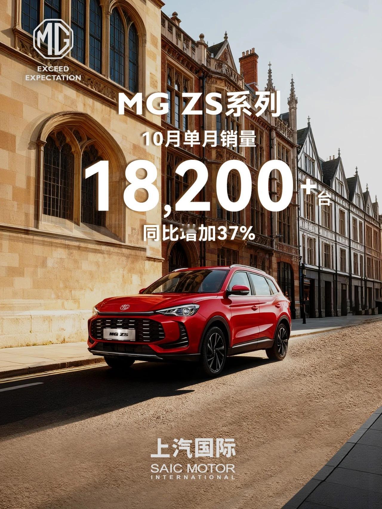 上汽MG海外1-10月销量突破50万台,同比增长8%。上汽MG ZS系列10月销量超1.8万台,同比增加37%!