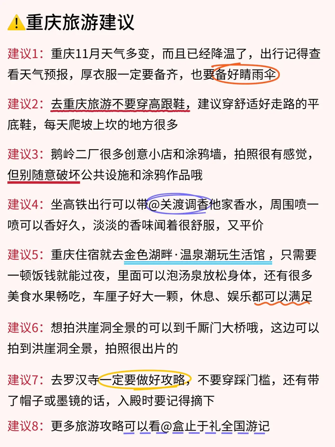 第一次去重庆的宝子记得要做好攻略,游玩起来都方便很多🙆♀️
