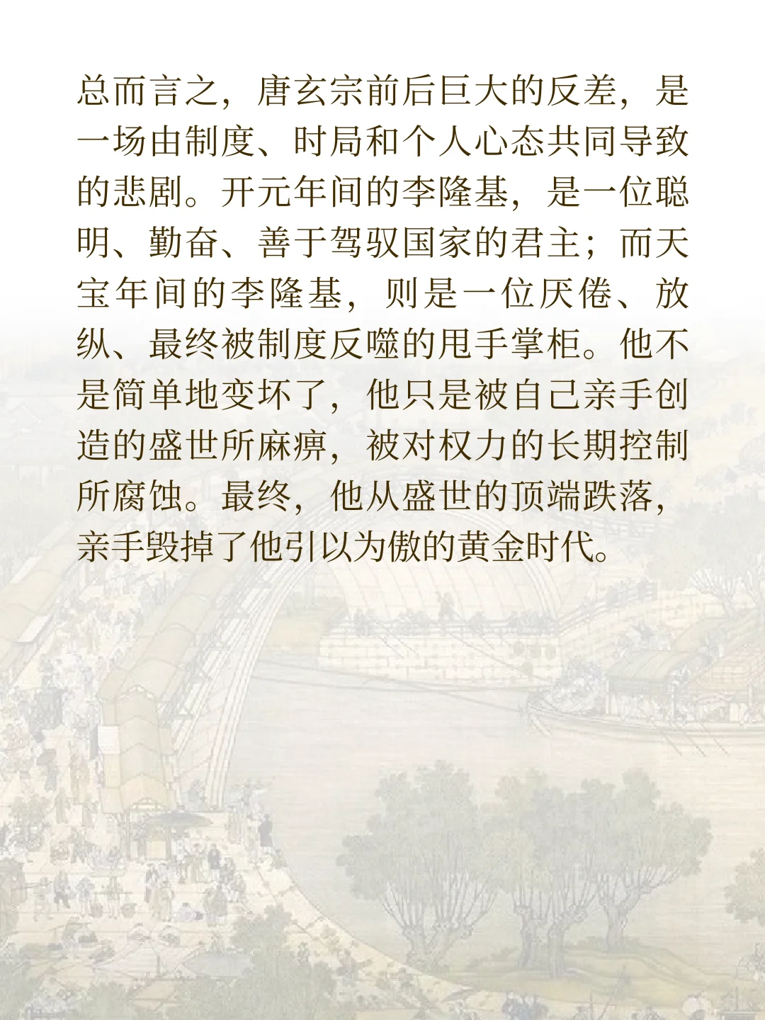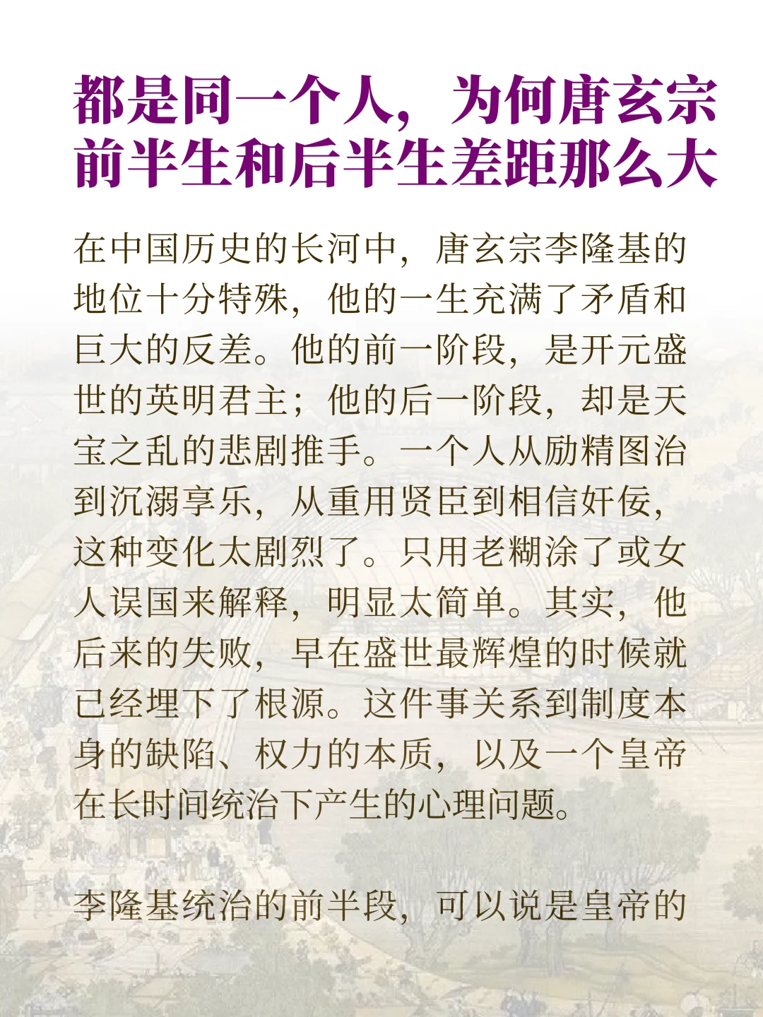 唐玄宗李隆基的一生,简直就是一部权力版的史诗级悬疑片。我们都知道他前半生创造了开元盛世,让大唐站在了世界之巅。可为什么到了后半生,他却亲手葬送了一切,让安禄山一把火烧掉了所有的辉煌呢?这中间的巨大反差,真的只是因为宠爱杨贵妃吗?历史远比我们想象的复杂,它藏着一个皇帝在巅峰时期的巨大心病。