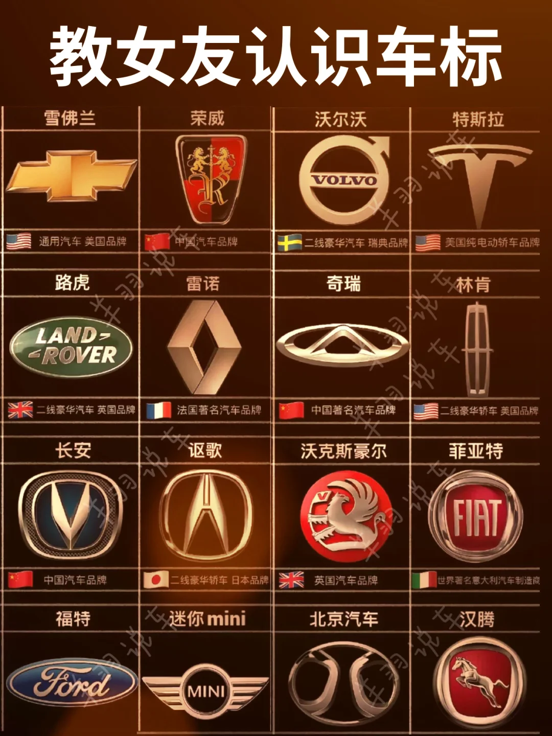 🇮🇹意大利:包括法拉利、兰博基尼、玛莎拉蒂、菲亚特等。这些品牌多以高性能、超豪华闻名,代表着极致的汽车工艺和速度激情。