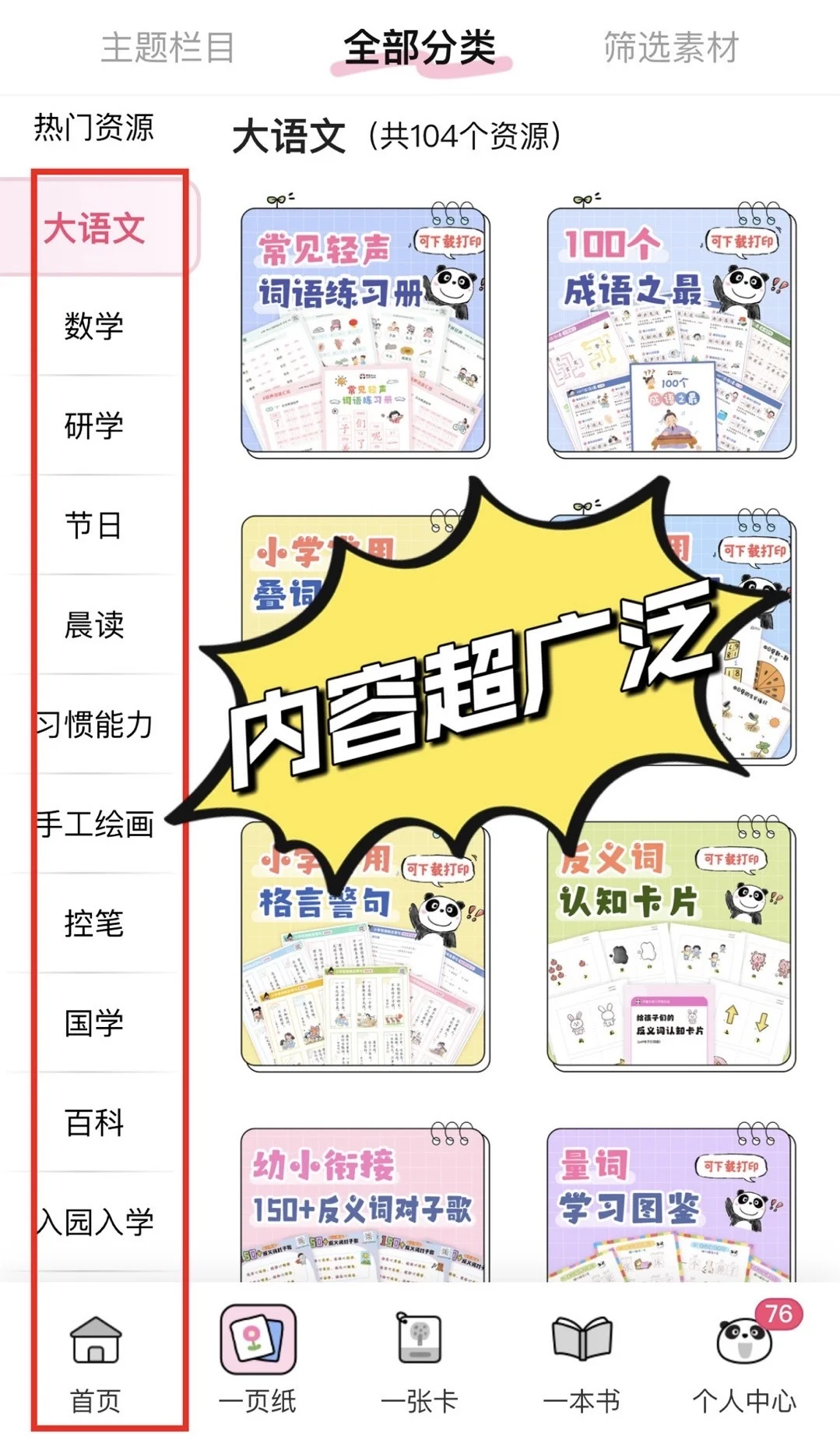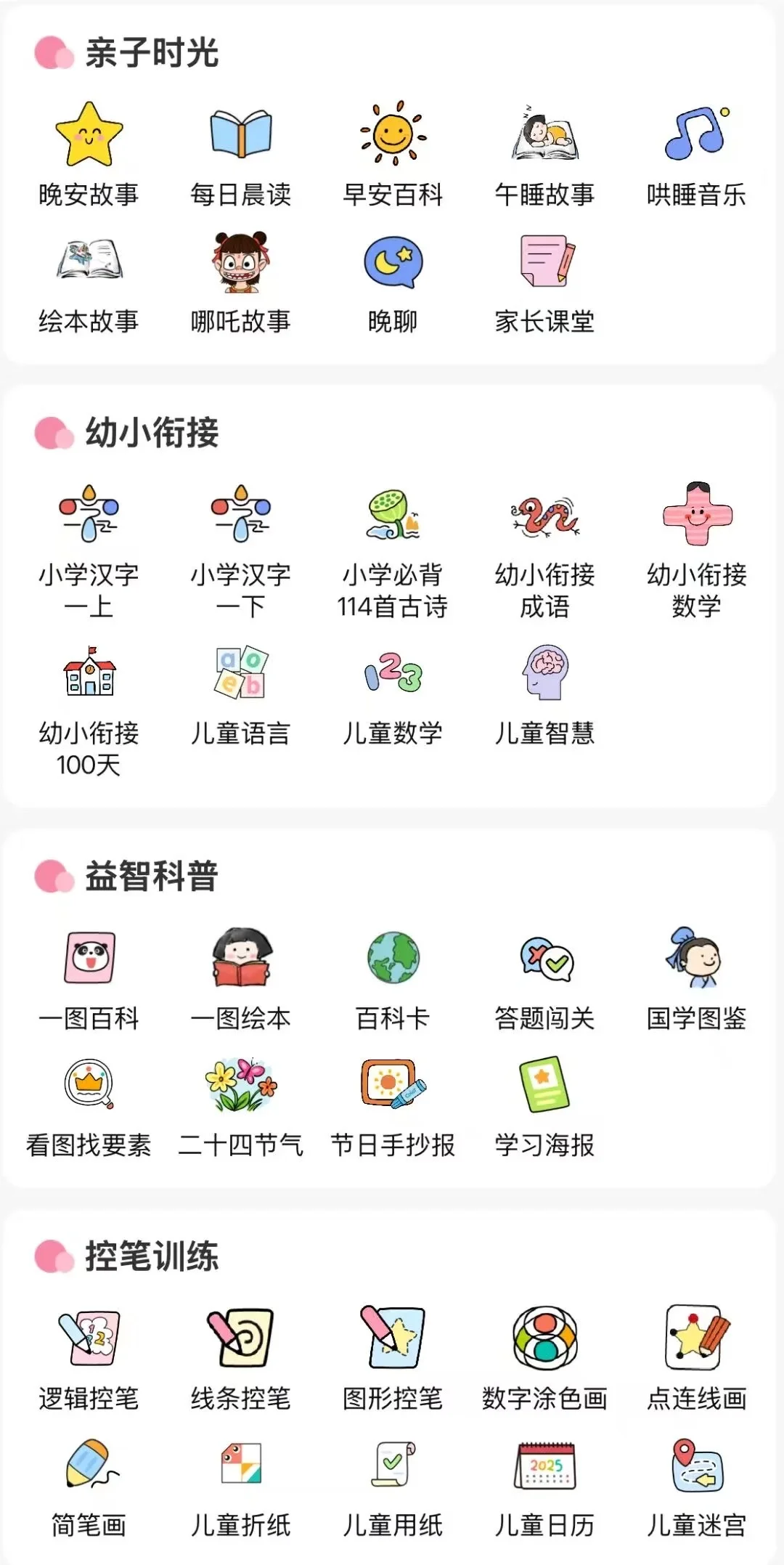 权益一 10000+原创学习资源:涵盖拼音、识字、数学、生活百科、科学知识等12个大类,涵盖了幼儿园和小学1-3年级的基础知识和课外知识;