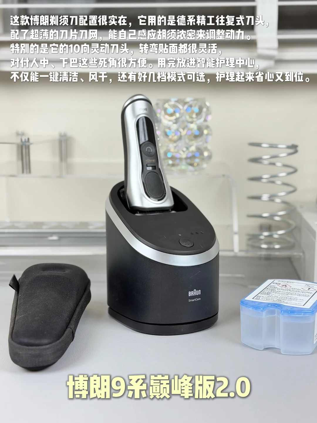 搭载德系精工往复式刀头,配合超薄刀片刀网,能自动感应胡须密度并调节动力。10向灵动刀头转向灵活,轻松贴合人中、下巴等难剃部位。使用后放入智能护理中心,一键即可完成清洁与风干,支持多档模式,日常维护非常省心