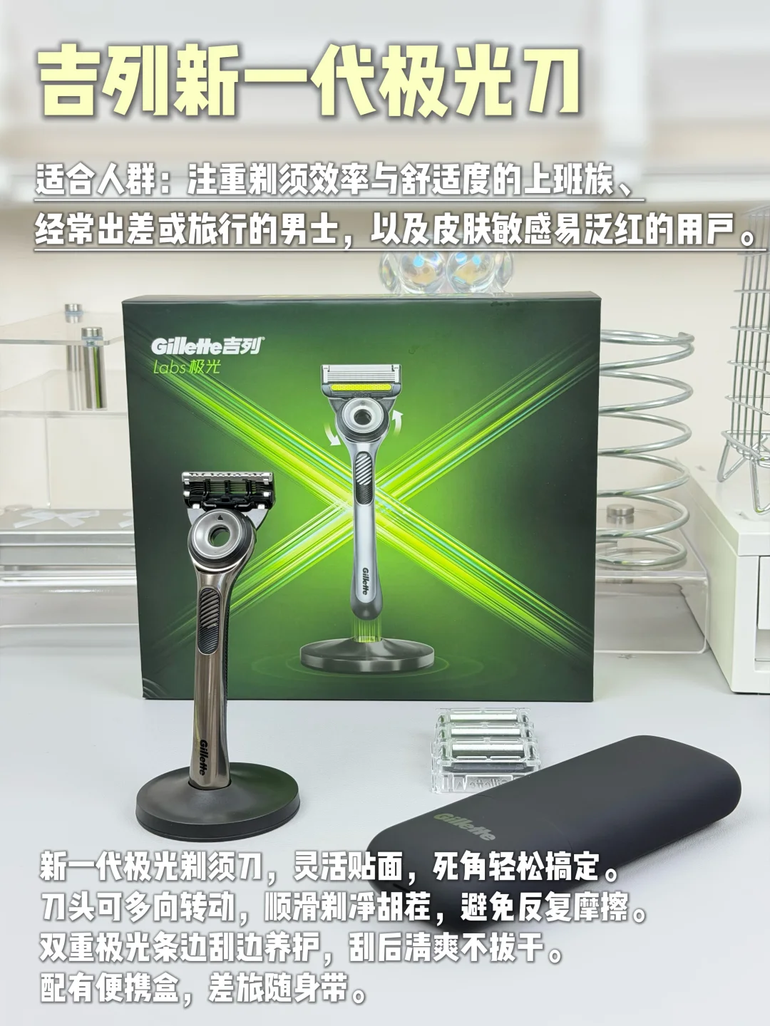 双重极光条边刮边养护还能带走油腻,刮完不泛红不拔干,整个人都清清爽爽的,配的旅行盒出门携带也方便