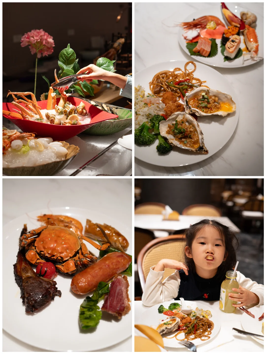 泡完汤直奔自助餐厅,简直是吃货的快乐星球!现切三文鱼、肥美的清蒸大闸蟹、香嫩的烤牛排、滋滋作响的烧烤……荤素搭配超丰富,宝宝爱吃的小甜点、水果也管够,菜品新鲜味道在线,一家人能吃到扶墙出~