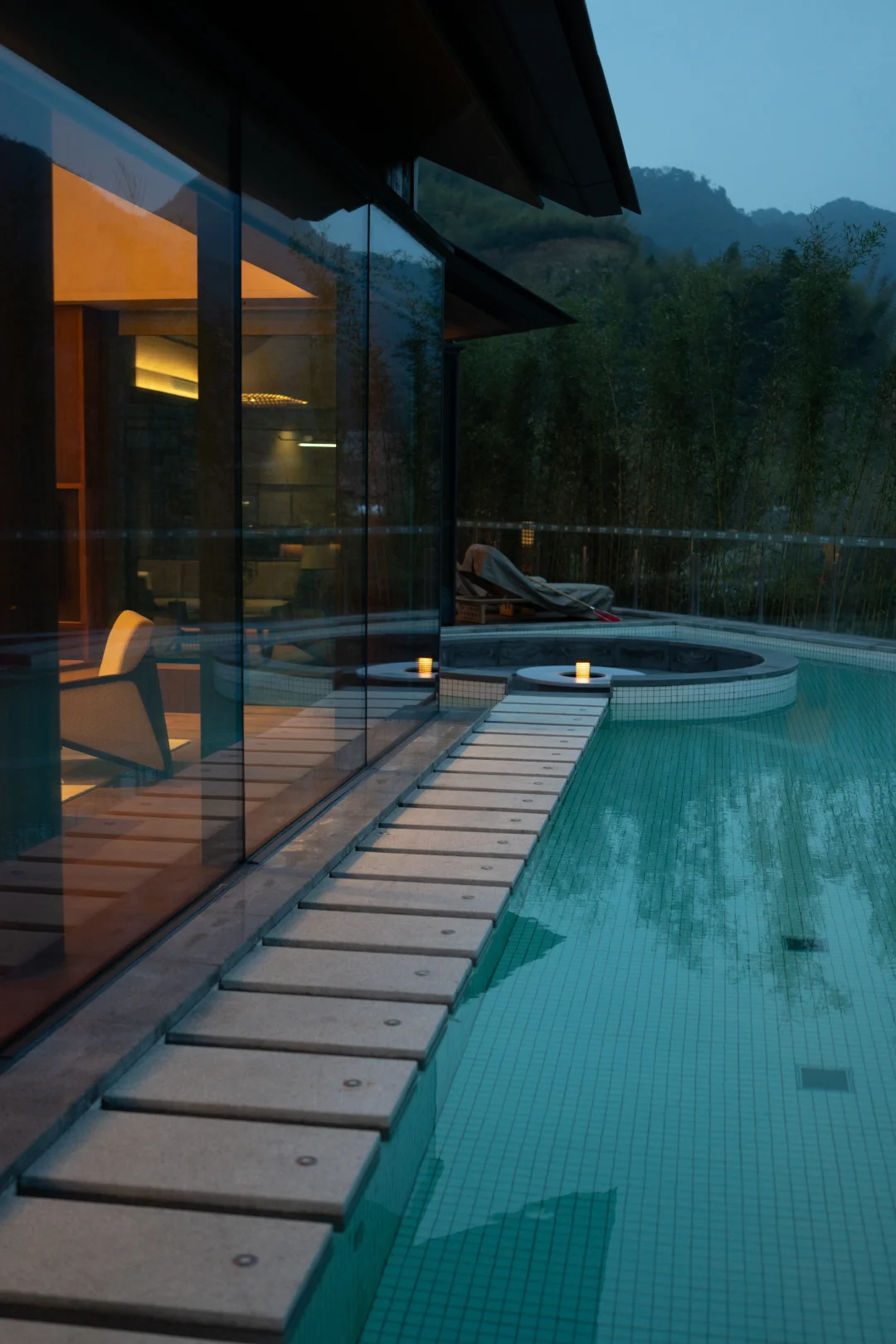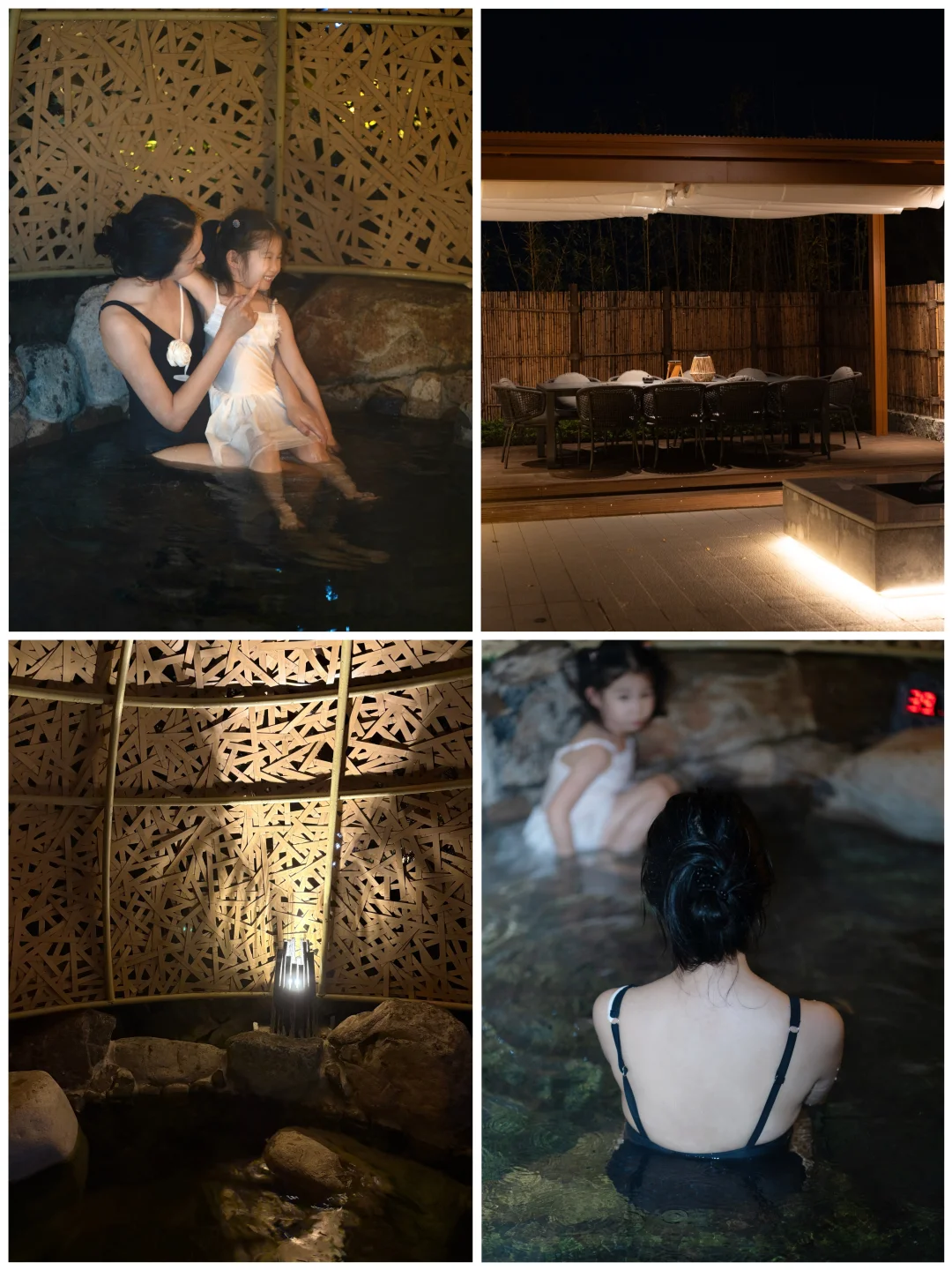 带娃泡汤才是秋日正确打开方式!露天汤池藏在林间,暖汤倒映着树影与天光,水温刚好适配宝宝肌肤,泡完浑身舒爽。想要私密时光就选带私汤的房型,庭院里的泡池配着绿植环绕,泡累了还能全家一起烧烤,烟火气十足,家庭聚会超惬意~阴雨天泡汤别有一番韵味😊