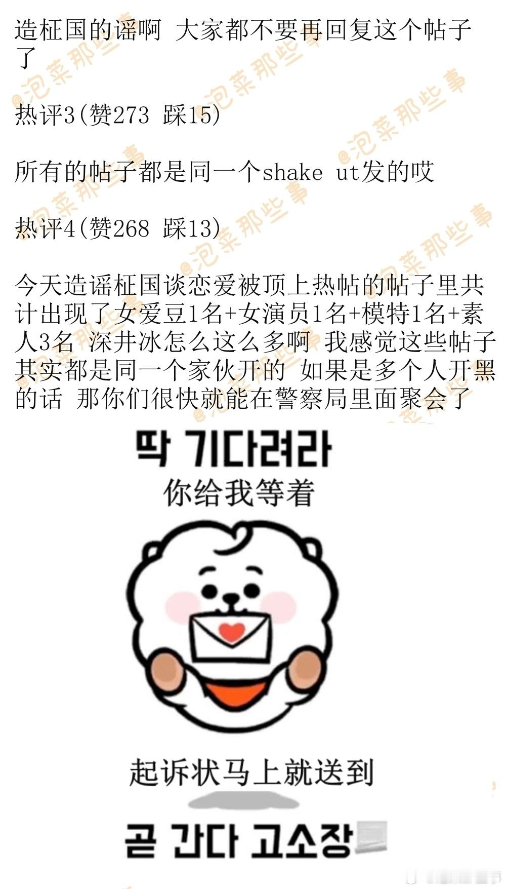 🔥🔥韩网500踩热帖评论翻译🔥🔥网友开帖喊话田柾国跟Winter公开交往