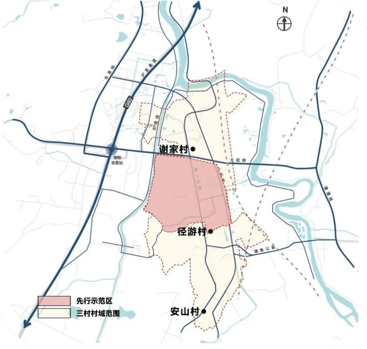 它由萧山区浦阳镇的谢家村、径游村、安山村共同组成,由萧山区政府和浙江传化集团有限公司共建。