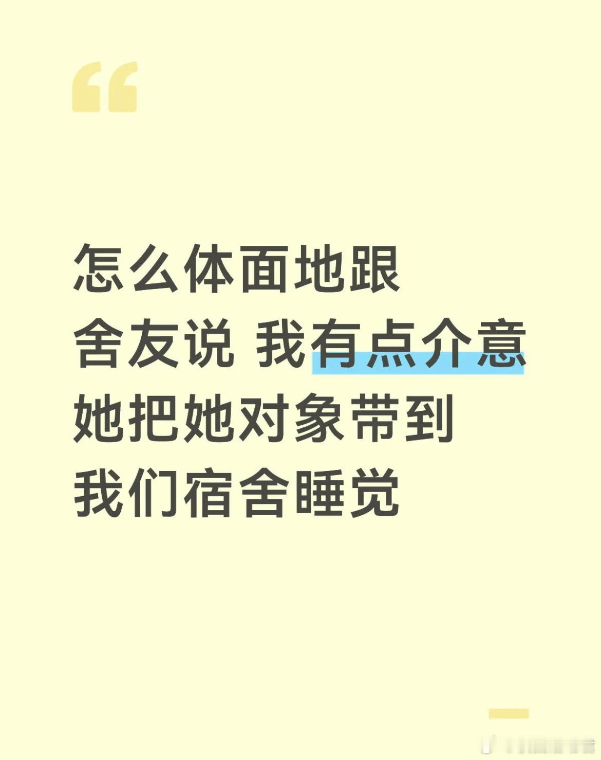 怎么体面地跟舍友说 我有点介意她把她对象带到我们宿舍睡觉