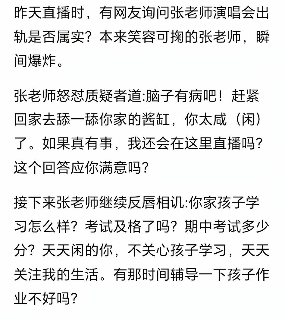 感觉张雪峰在直播间被人戳住了痛点,有些恼羞成怒! 如果他跟自己的老婆一起看演唱会,被网友说,他会坦然一笑, 现在怒怼质疑者,有点儿欲盖弥彰之意。