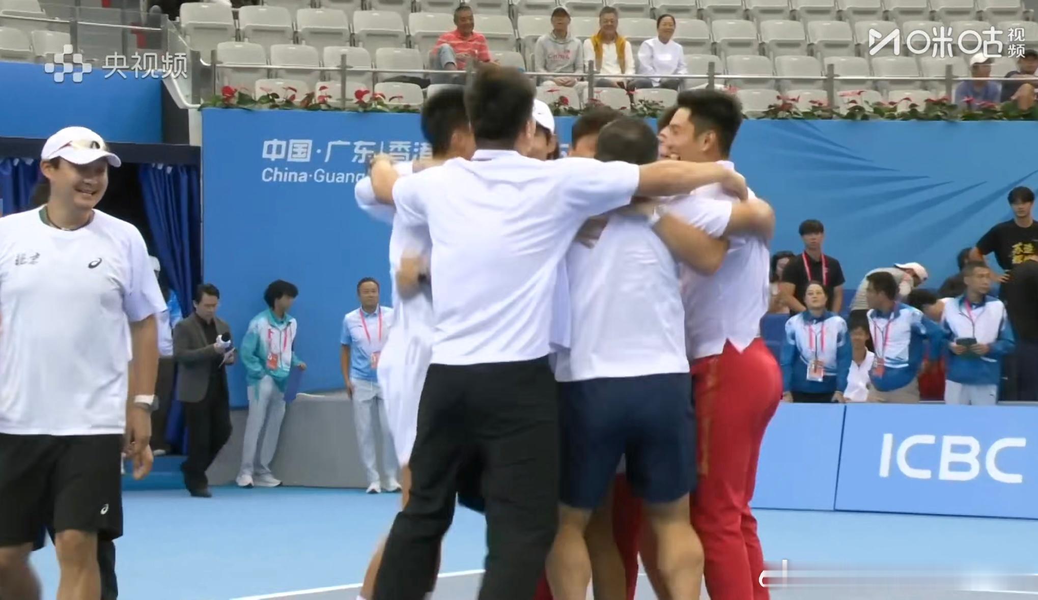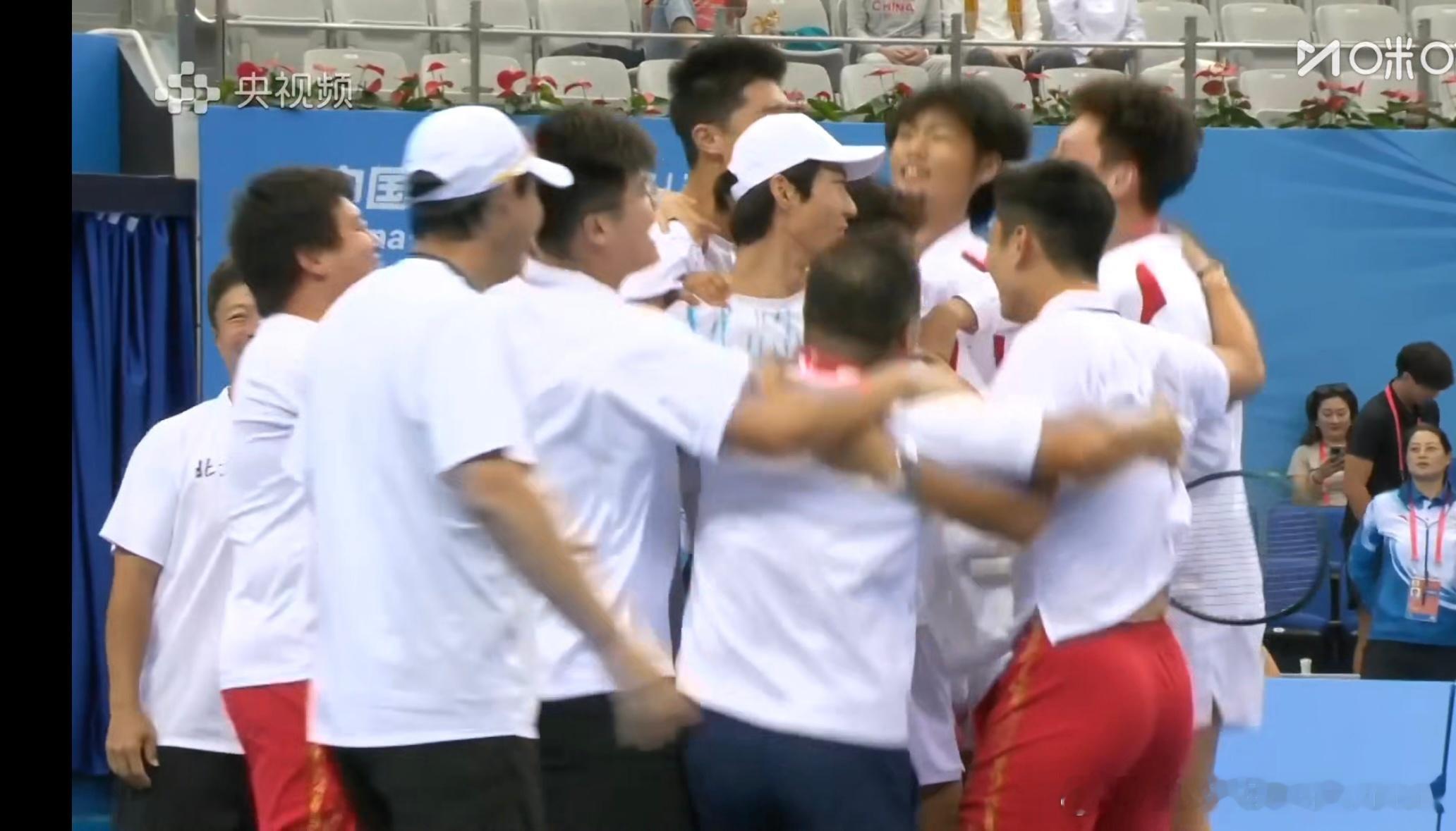 北京男队!!!第十五届全运会网球男子团队金牌!!!金牌赛打满3场!商竣程蹦蹦跳跳太乐呵了第一场:商竣程出战,江苏队避其锋芒选择“田忌赛马”,没有直接派上此前的一单徐旷清直接硬刚,小商很轻松拿下第一分!第二场:U17对决,北京派出橘子碗冠军15岁齐洪瑾,江苏派出国内很强的16岁胡佳,最终胡佳胜出!决胜场:男双!由于规则每个球员只能上一场,所以江苏把徐旷清留在了这场,不过最终可惜了,决胜盘抢十,北京队胜出!拿到了这枚金牌!!!