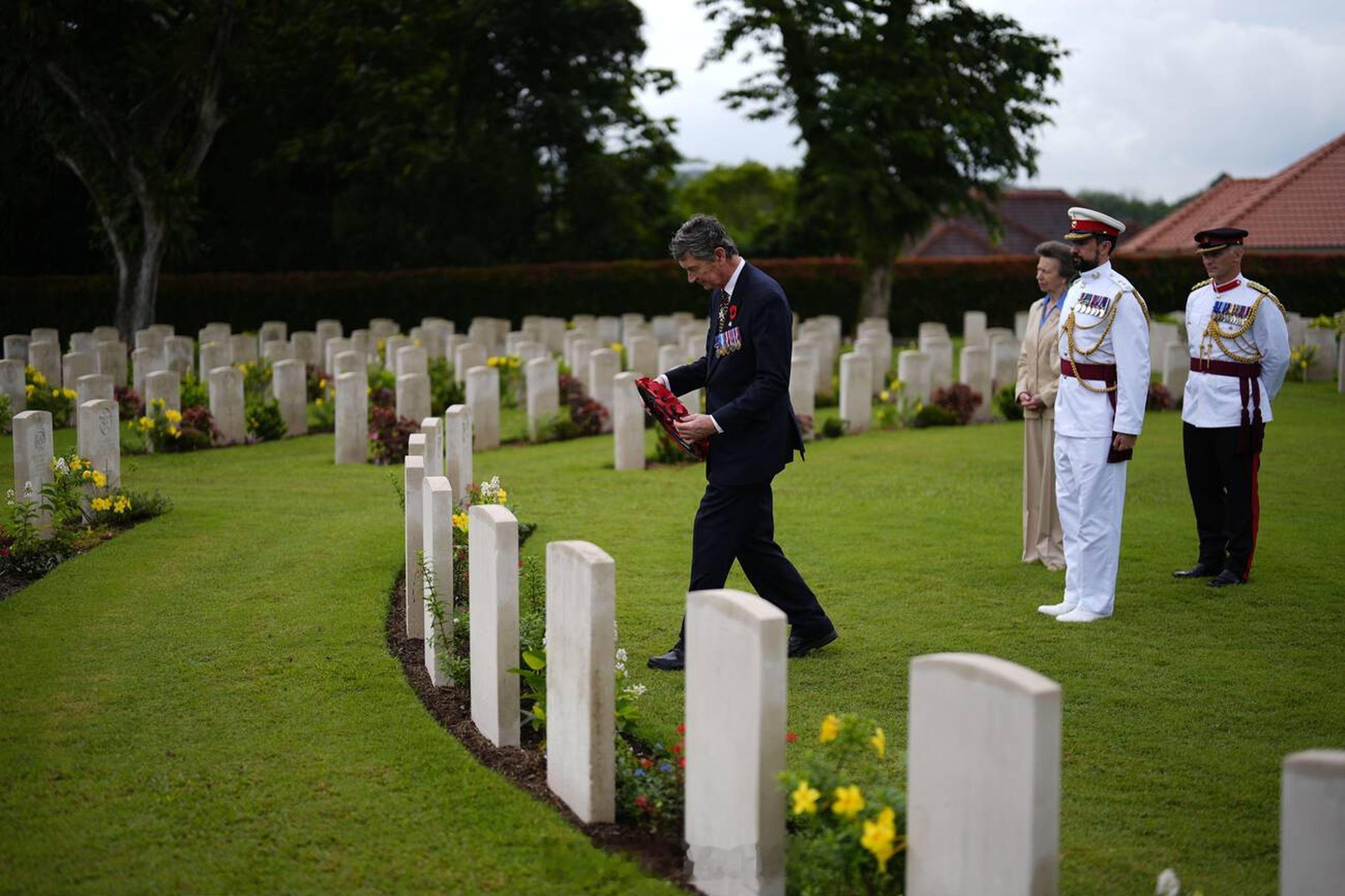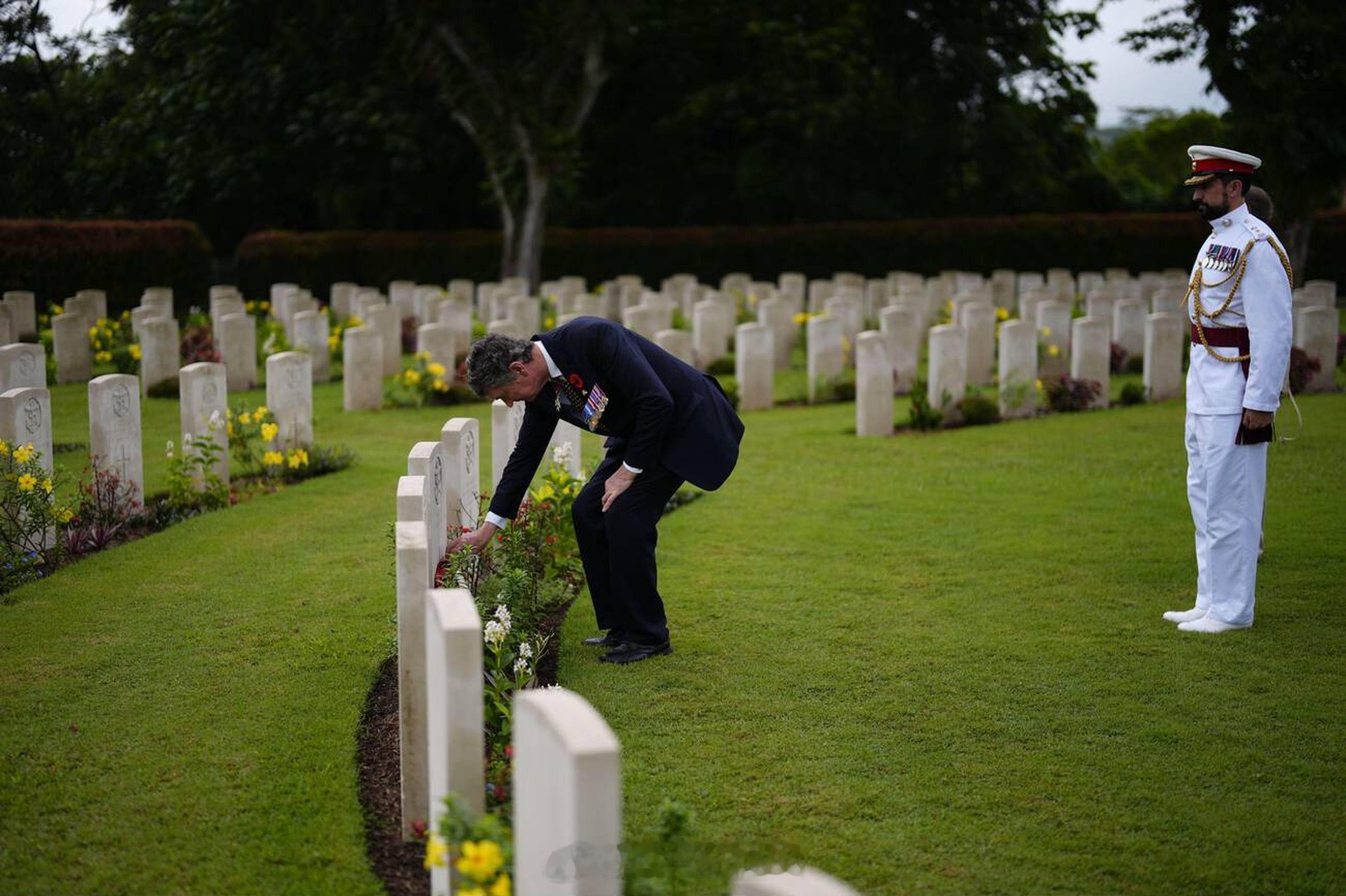 今天蒂莫西劳伦斯爵士在新加坡克兰芝烈士公墓向他的亲戚James Bremridge敬献花圈🇸🇬后者曾于1941年12月在南海为HMS Repulse服役,不幸遭遇🇯🇵✈️击沉,在二战期间壮烈牺牲,终年1️⃣8️⃣岁。