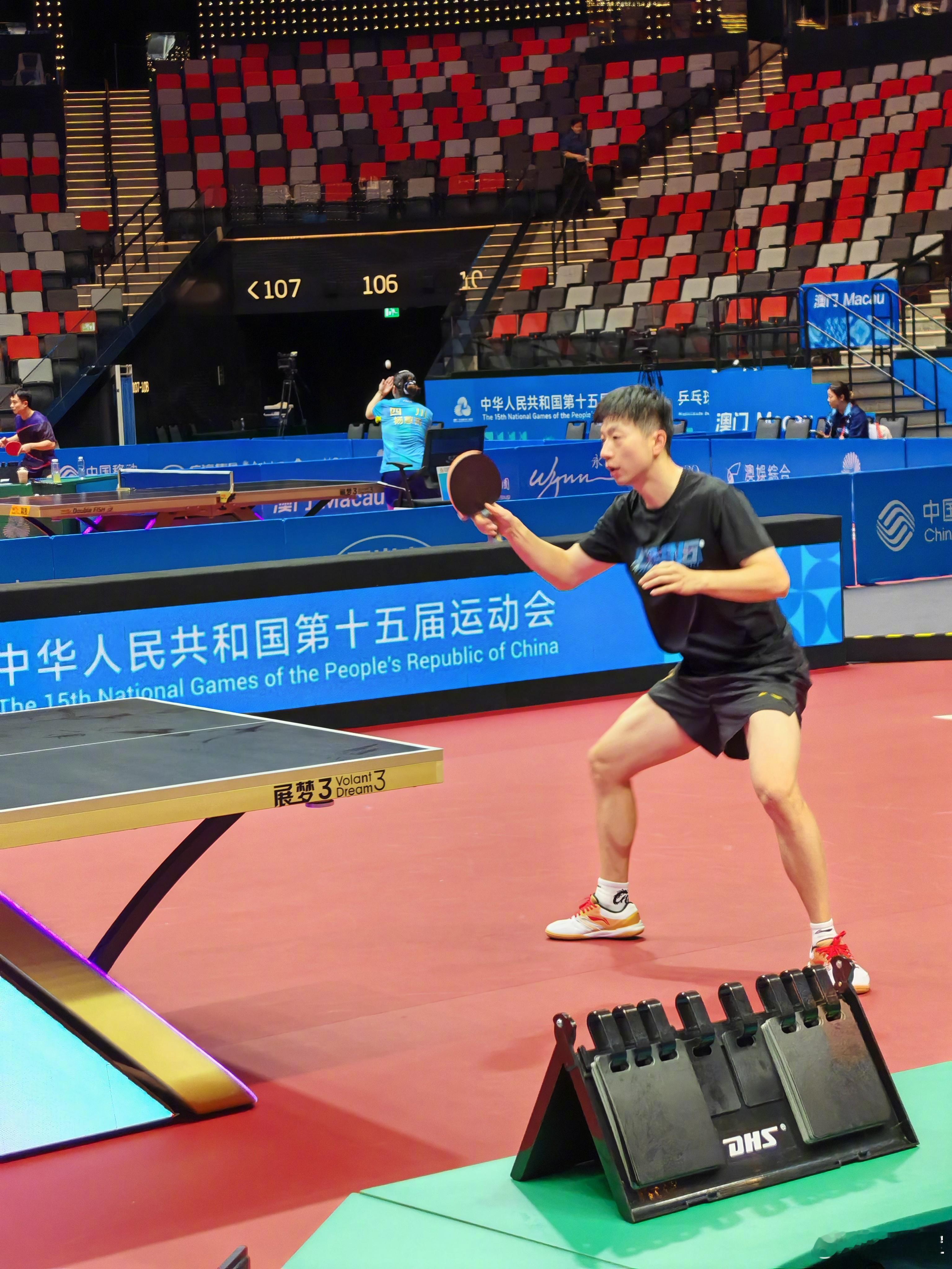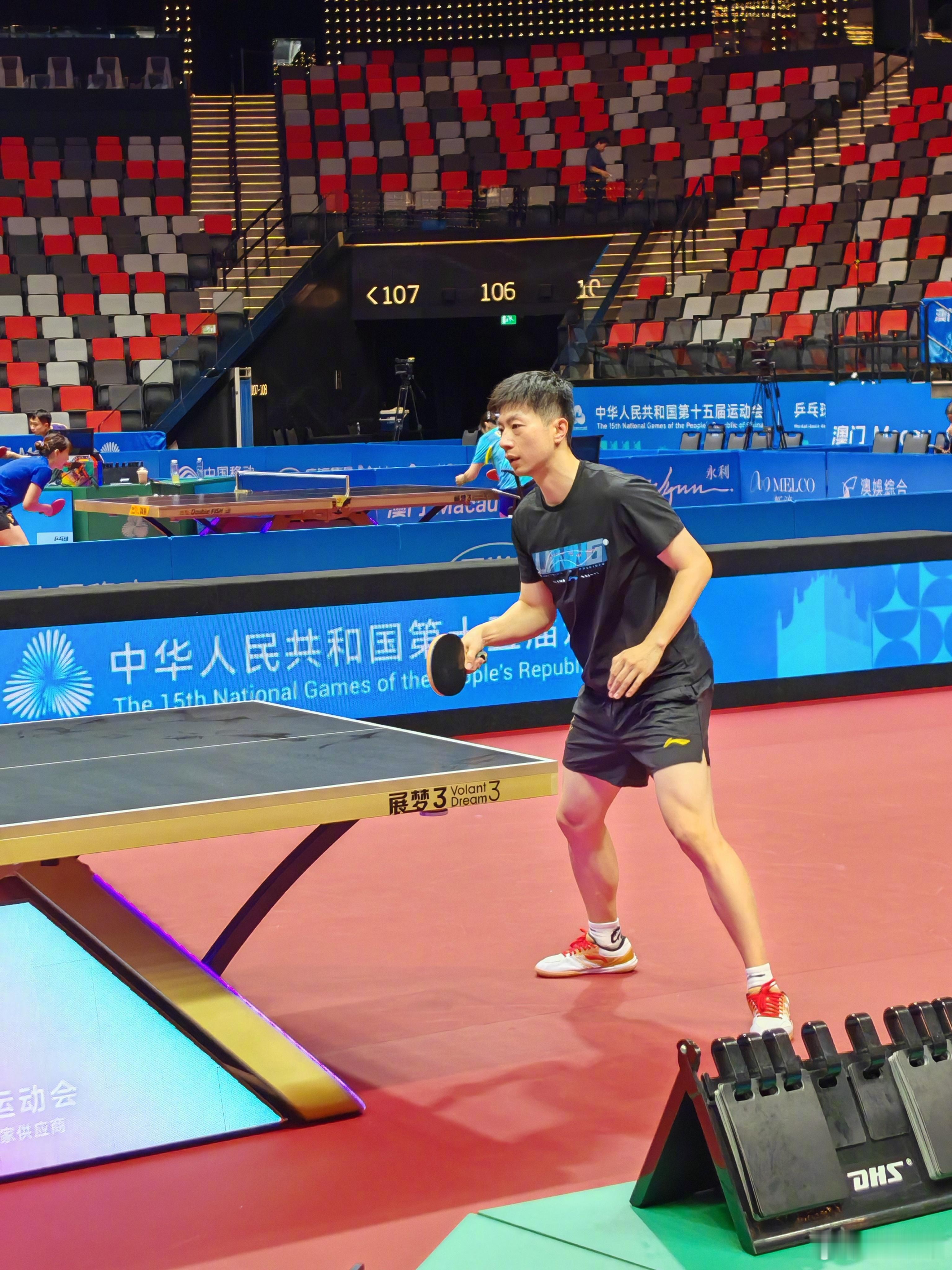 马龙进行热身训练!