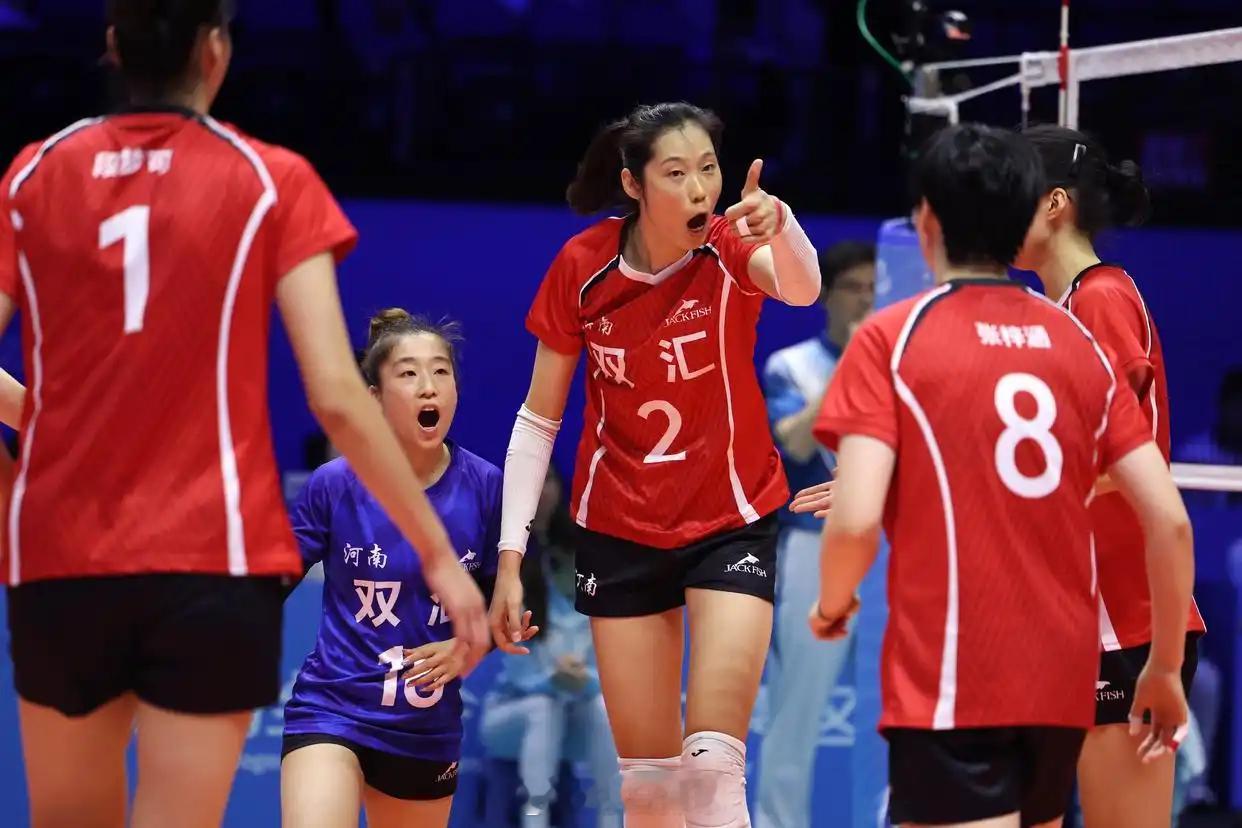 新华社组照: 女排小组赛,11月12日,A组的河南女排3-0北京女排(新华社记者 陈斌 摄)。