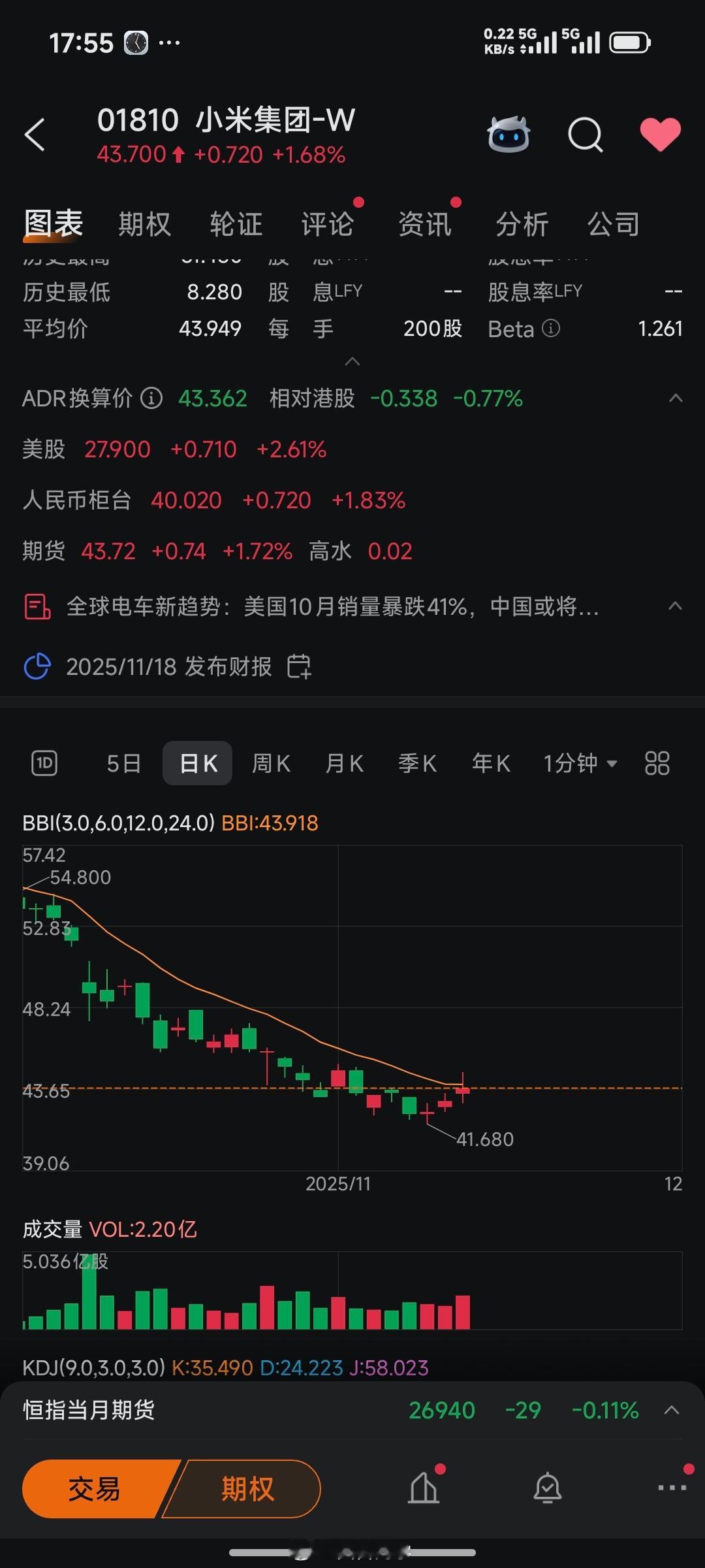 小米已经三根阳线,底部趋势基本确认了!再磨一磨到18号财报,后面再看了