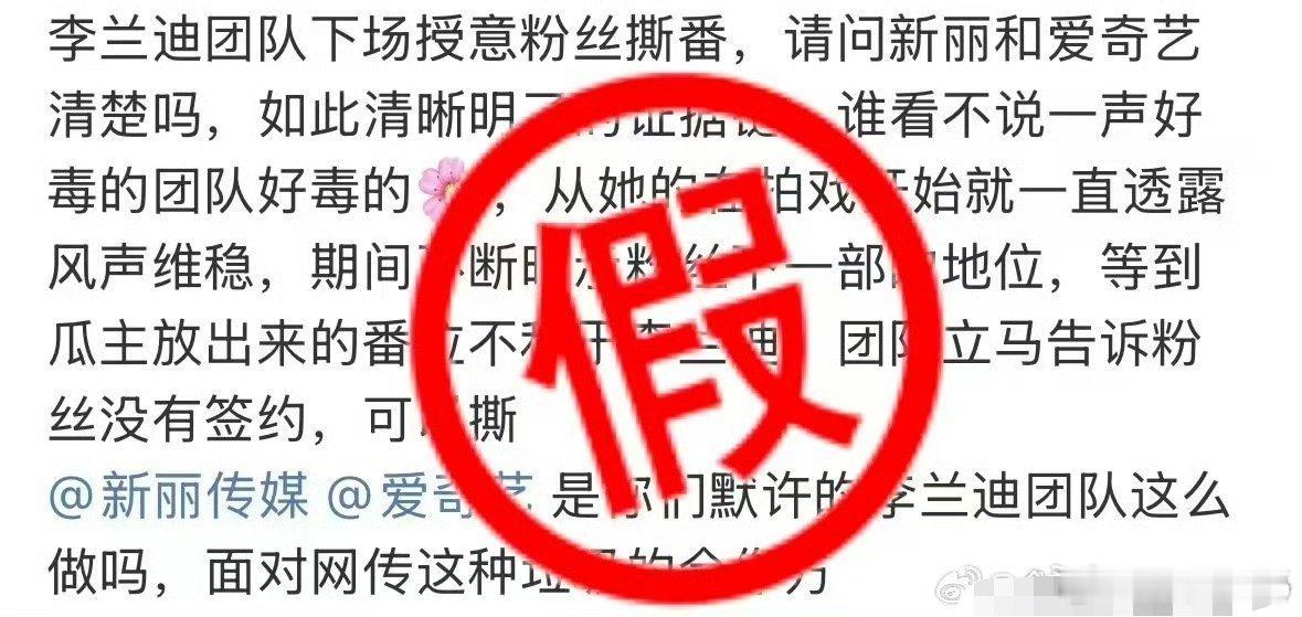 李兰迪对接否认授意粉丝争番 ,所谓的工作室对接消息都是假的,让粉丝不要相信非官方渠道的消息