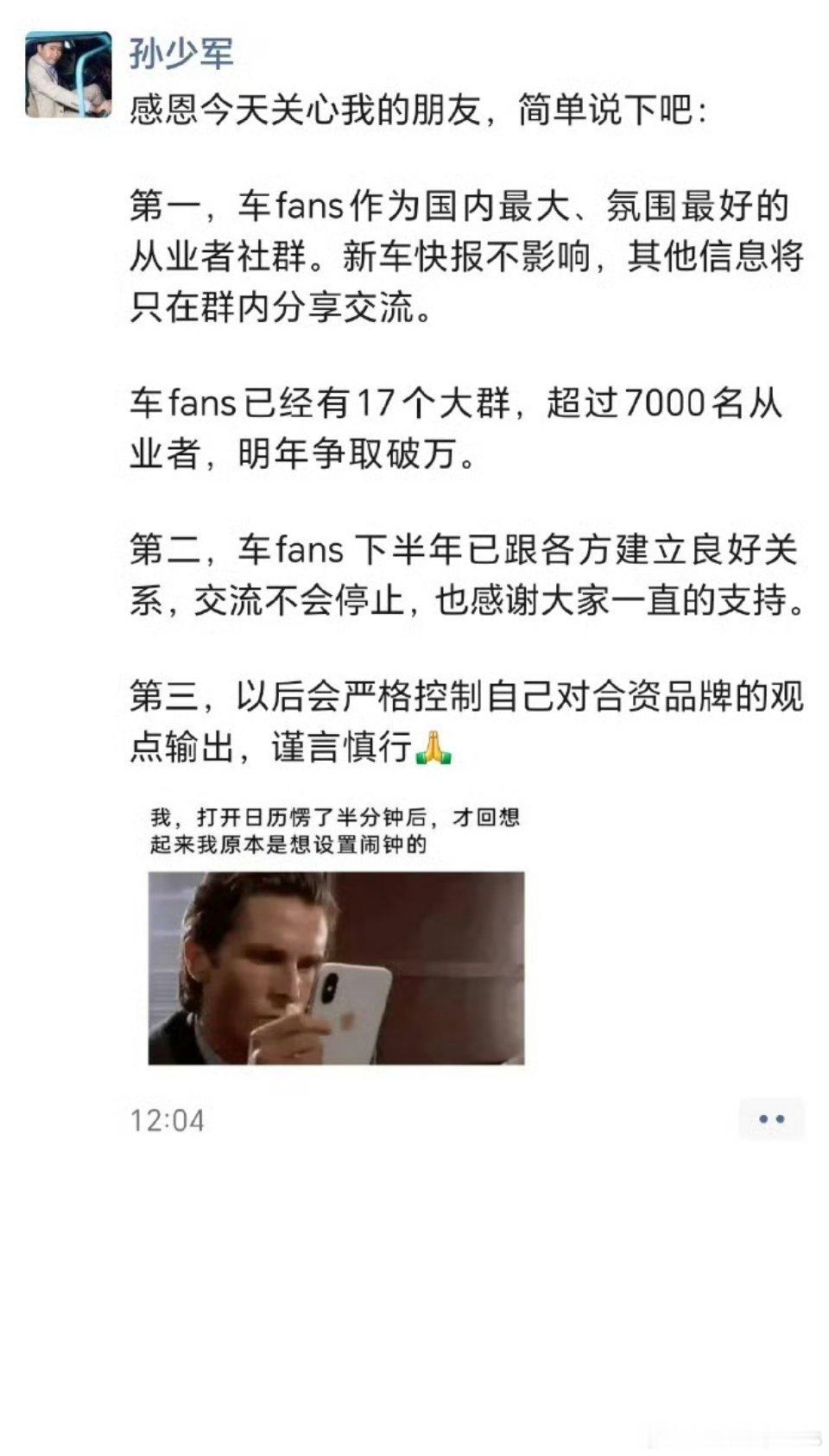 孙少军在朋友圈回应自己账号被处理封禁一事……