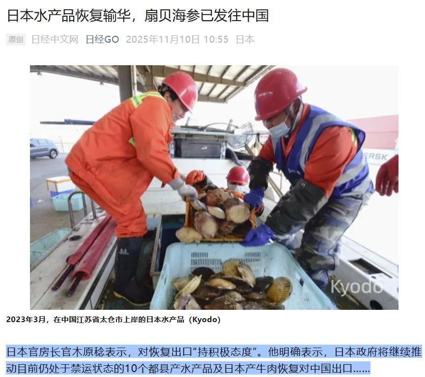 中国这次放手,让日本商界都松了口气! 最近看到个新闻,之前因为中国实施禁运,从而停滞多月的北海道冷冻扇贝,现在终于重新启程发往中国了。官房长官木原稔在记者会上更是难掩积极态度,毕竟中国市场这份“订单”,对不少日本企业来说太关键了。 给大家看一组数据就明白了,2022 年日本水产品全球出口总额3873 亿日元,其中对华出口额为 871 亿日元,占到了出口总量 22% 以上。但禁令实施后对华出口额暴跌超 93%,仅 2024 年就只剩 61 亿日元。北海道渔民两年损失超 200 亿日元,中国市场的重要性不言而喻。 而且不光是水产品,一大批日本拉面品牌也开始进军中国市场,就比如日本第二大连锁拉面品牌町田商店,母公司Gift控股计划到2028年将海外门店扩至3倍,其中中国市场要新增30 - 50家直营店,就连售价都比日本本土低一成。 说白了,中国市场庞大的消费潜力,让这些国外品牌再也按捺不住了,都想来分一杯羹。像美国消费者新闻与商业频道也表示,从美妆到营养品,一众西方品牌都希望能进入中国市场。比如之前苹果透露三年内在华研发中心数量增加 20%;特斯拉在上海落地储能超级工厂,这些都是例子。 甚至就连很多奢侈品牌都不例外,为了抢占国内市场份额,都开始加入打折阵营。就拿特卖电商唯品会来说,最近数据显示,因折扣性价比,EA7、BALLY、汤丽柏琦等多个奢侈品品牌销量近期同比增长超30%。这种情况在国外太难得了,中国市场正让奢侈品们看到新的增长潜力。 说到底,不管是日本企业盼着恢复出口,还是奢侈品大牌忙着打折,本质上都是因为中国市场的分量越来越重。这里既有旺盛的消费需求,也有不断升级的消费理念,这样的市场活力自然让各方都不愿错过。