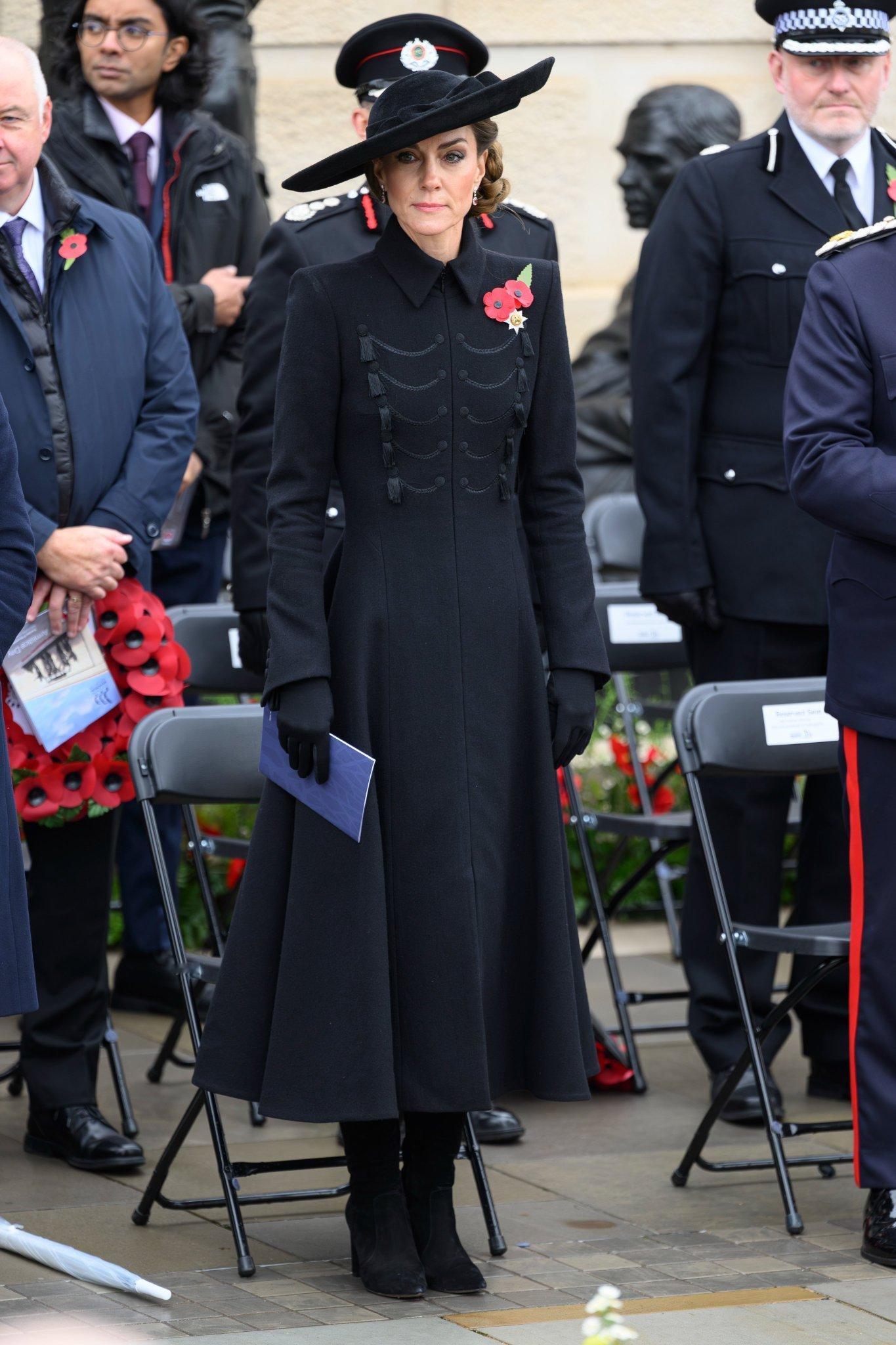 补几张昨日出席纪念活动的照片~这件有廓形&有军装风格的凯瑟琳·沃克大衣终于看到“全貌”了!