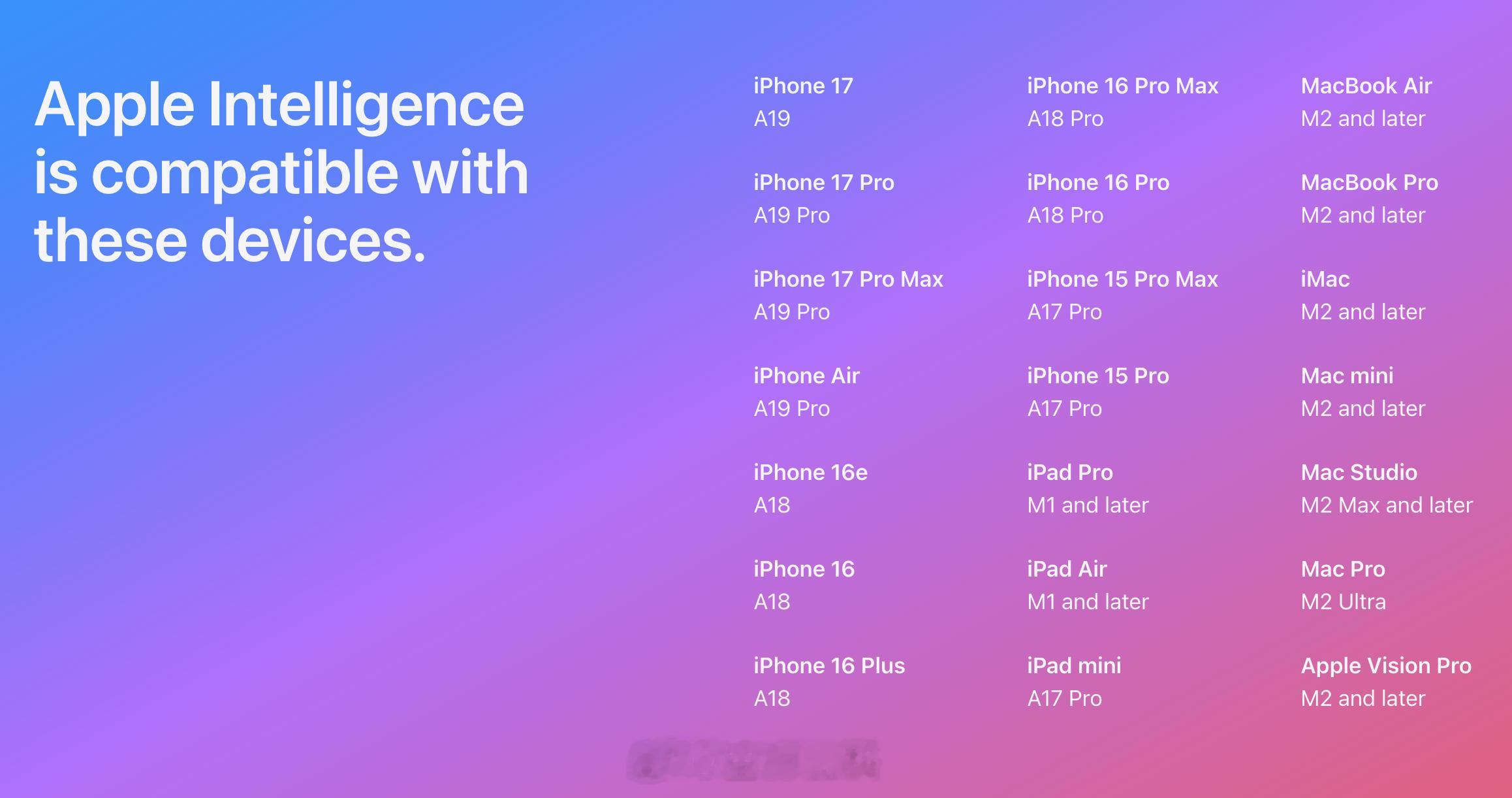Apple Intelligence 不支持 M1 Mac 了?苹果美国官网 Apple Intelligence 的兼容性列表,之前 M1 芯片的 Mac 改成了 M2 起步,但是奇怪的是其他国家/地区,比如香港官网,还是显示 M1 芯片。有可能是奇怪的 bug,毕竟之前 M1 芯片的 Mac 也确实能用 Apple Intelligence。另外,美国官网 iMac 也没有 M2 芯片。再等几天,看看全球苹果官网是不是同步,还是美国官网恢复 M1 就知道了。